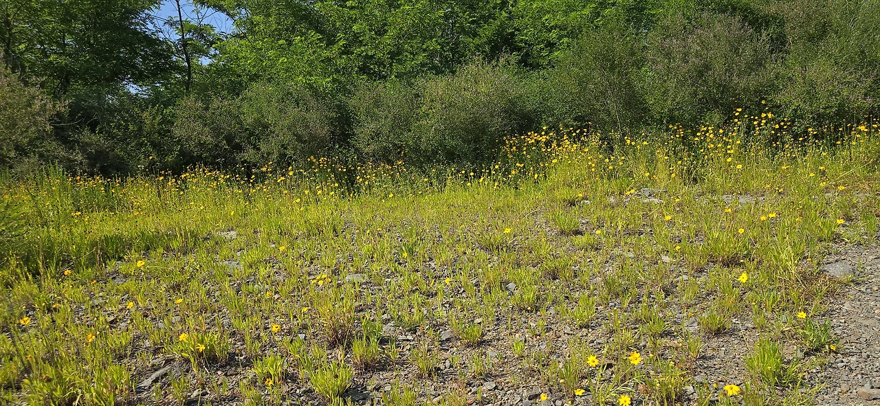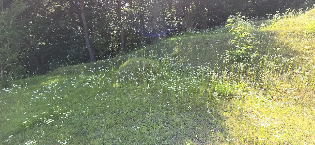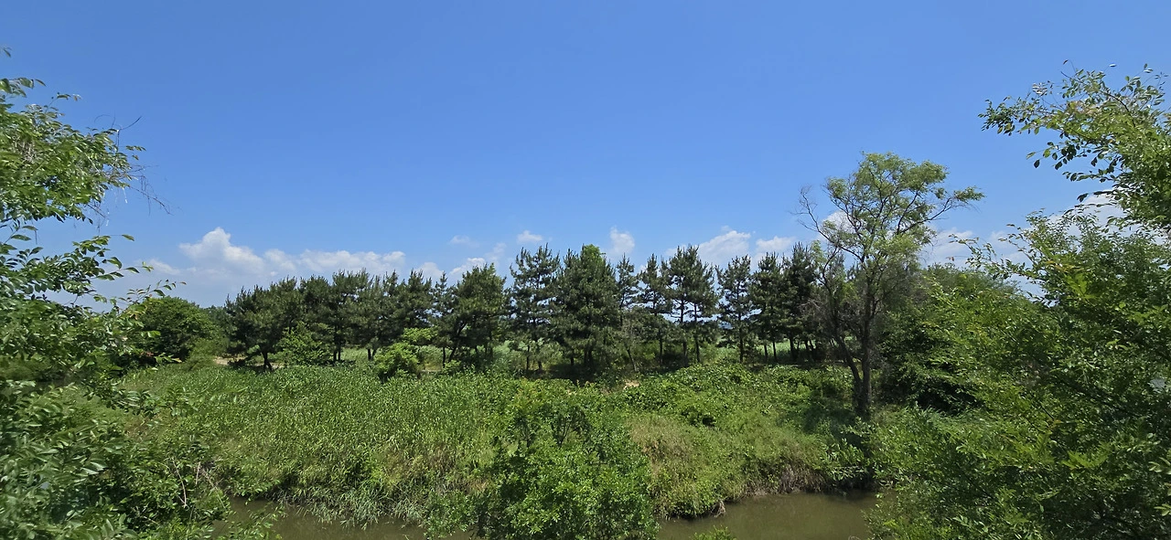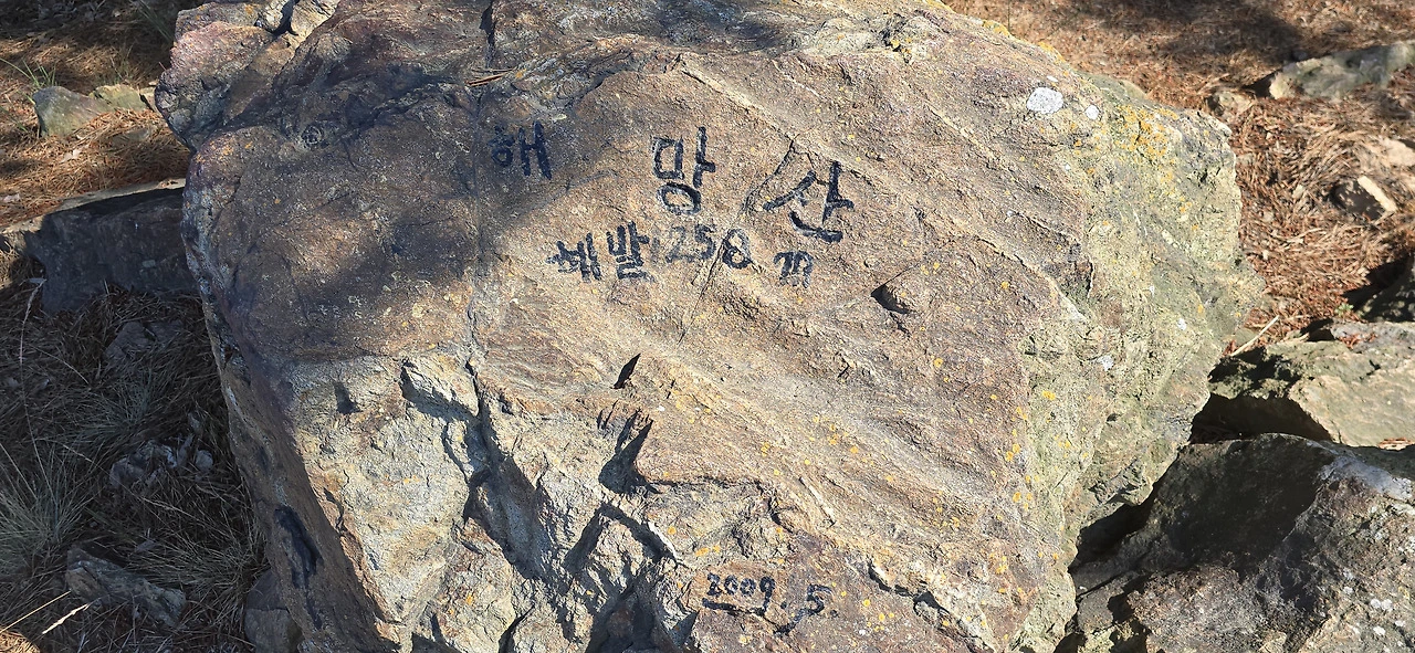 남이장군묘에서 잠시 쉰 다음 산을 오르기 시작했다. 해망산이다. 고전이 시작됐다. 길이 잘 보이지 않았다. 아니 길이 없다고 하는 것이 맞을 것이다. 경사가 그리 심하지 않으니 길이 없지만 수풀을 헤쳐 나가기 시작했다. 악전고투하며 해망산으로 가는데 도중에 도로가 산을 관통하고 지나갔다. 서해안고속도로와 평택시흥고속도로를 연결해 주는 도로다. 이 도로로 해망산은 잘리지만 다행히 동물이 이동할 수 있게 해망산생태통로가 두 동강 난 산을 연결해주고 있었고 그 길을 통해 해망산 북쪽으로 건너갈 수 있었다. 워낙 사람이 잘 다니지 않는 길이라 곳곳에 핀 야생화가 엄청난 군락을 이루고 있어 눈이 호사했다. 드디어 해망산 정상에 다다랐다. 해발 128.5m니 야트막하다. 그래서 정상석도 참 소박하다. 전망이 탁 트이진 않았지만 그래도 드문드문 원경이 펄쳐졌다.