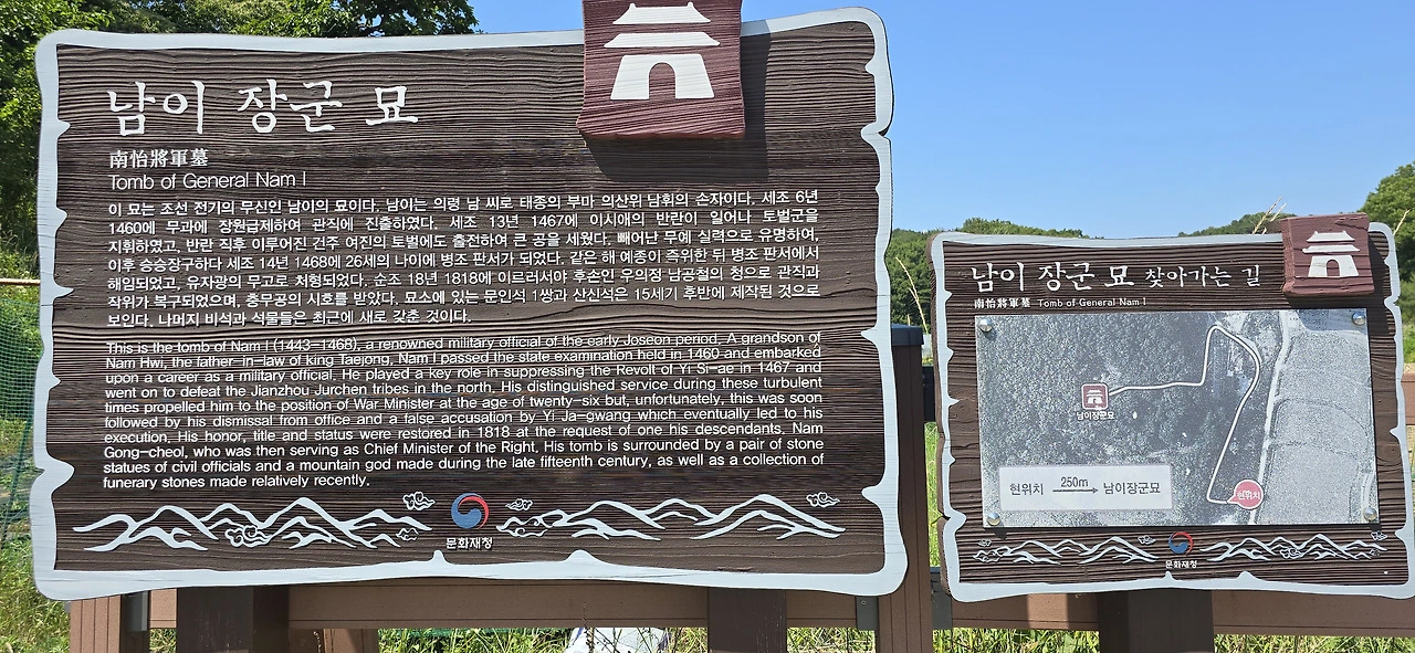 비봉습지공원을 나와 좀 걷기로 했다. 근처에 남이장군묘가 있다는 걸 알기에 가보기로 했다. 과연 도로를 따라 걷다 보니 표지판이 나타났다. 산쪽으로 난 길을 걸어 얼마 가지 않아 주차장이 나타나고 좀 가파른 언덕을 오르는 장군의 묘가 있었다. 남이 장군은 워낙 뛰어난 인물이라 기이한 일화가 많다고 한다. 스물일곱에 병조판서에까지 올랐지만 모함을 받아 처형되고 말았으니 비운의 장군이었다. 남이 장군 묘를 지나며 남이흥 장군을 떠올렸다. 남이 장군보다 100여 년 뒤의 사람인데 정묘호란 때의 영웅이었다. 안주성에서 청군을 무찌른 주역인데 북한 땅에 그의 유적이 남아 있단다.