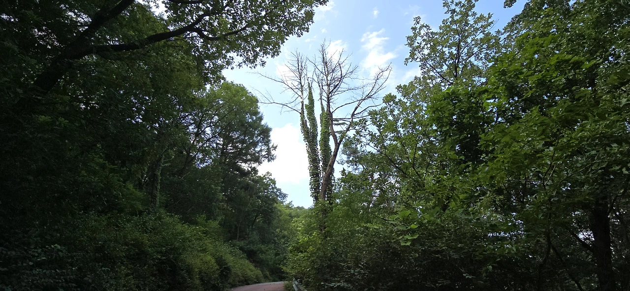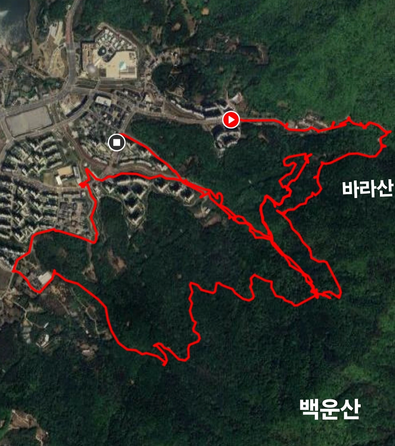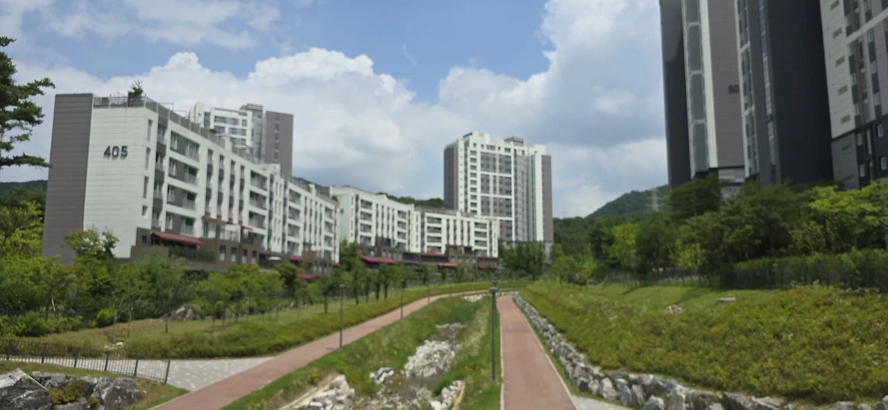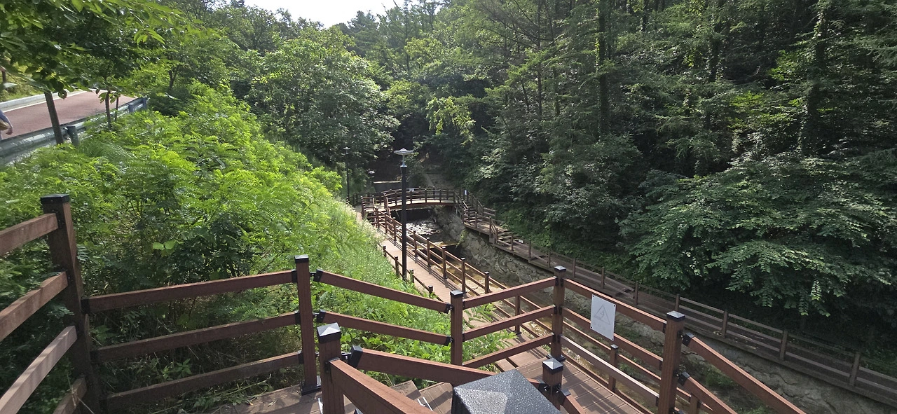 완전히 임도를 벗어났고 아파트 단지 사이로 난 길을 햇볕 아래서 터덜터덜 걷다 보니 어떤 다리 아래로 지나게 됐는데 다리 위 도로로 휙 지나가는 버스가 낯익은 번호다. 5번 버스 아닌가. 어제 탔던... 그리고 산길 임도는 그렇게 길고도 길었는데 아파트 단지 옆 도로로 걸으니 금세 또 다른 등산로 입구인 바라산 맑은숲공원 앞에 이르렀다. 전날 등산을 시작했던 곳이다.