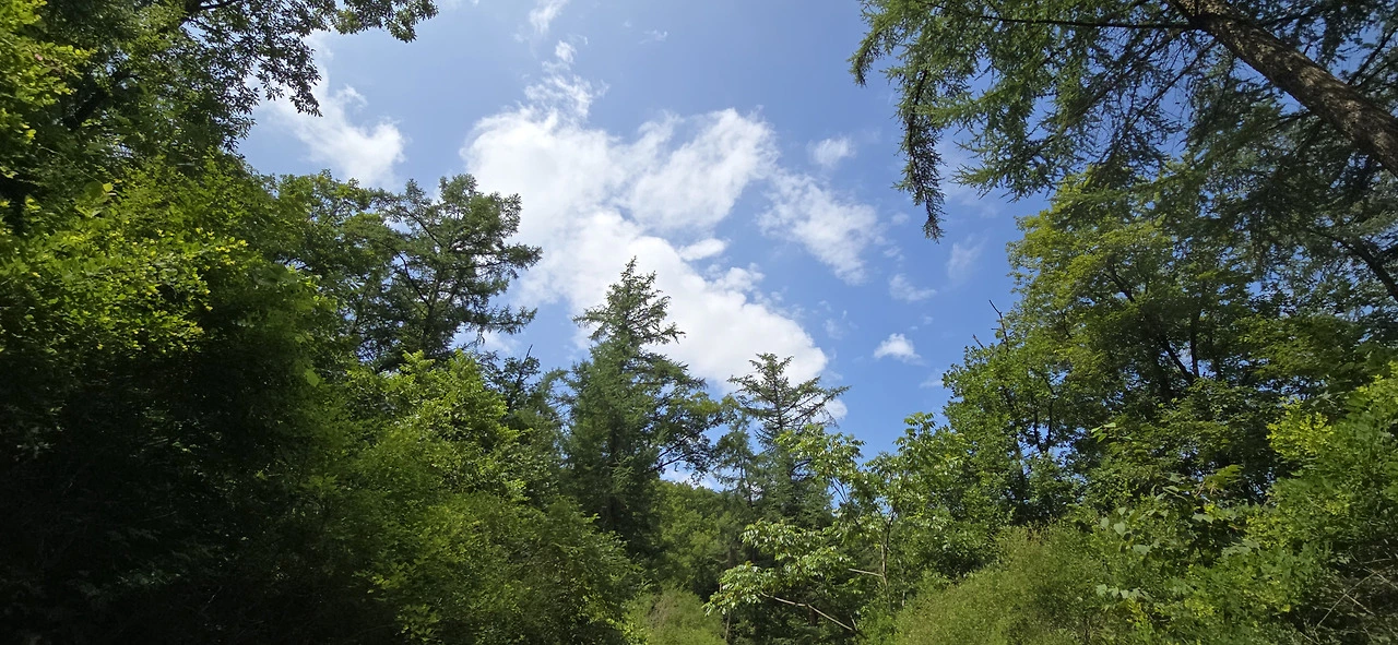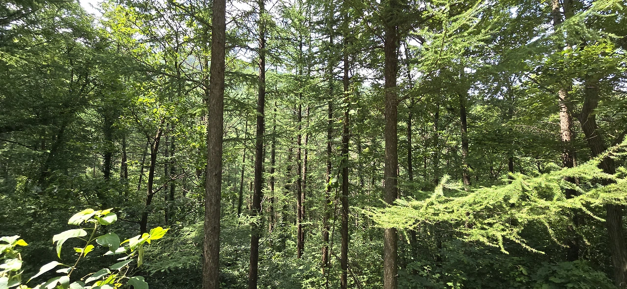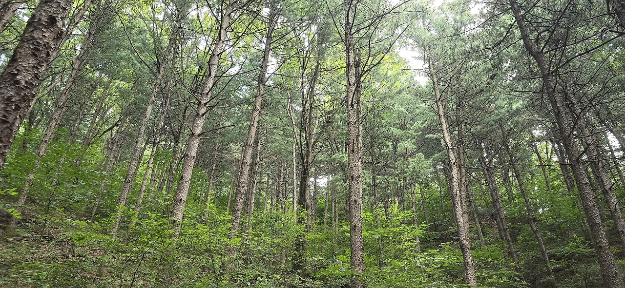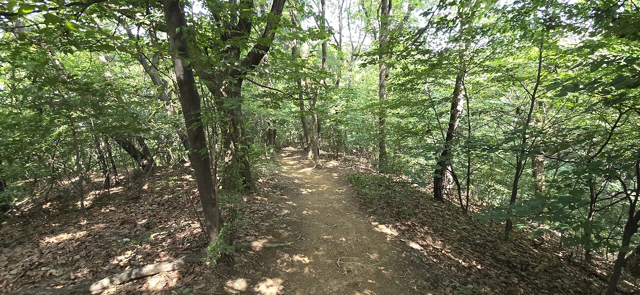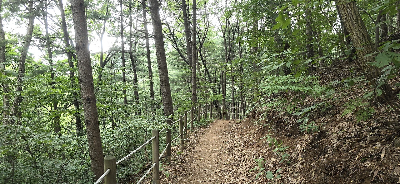 이곳에서 산으로 오르는 길은 계곡과 나란히 나 있어서 물소리가 어간 시원하지 않다. 임도에 이르기 좀 전 계단 끝나는 지점에 벤치가 몇 개 있는데 그곳은 아주 훌륭한 쉼터였다. 쭉쭉 뻗은 곧은 나무들이 하늘을 뒤덮고 있어 햇볕을 가려주고 숲에서 나오는 싱그런 공기가 이게 피톤치든가 싶다. 그곳에서 좀 쉬다가 숲속 오솔길을 찾아 나섰다. 바라산 자연휴양림 쪽으로 연결되어 있음직한 길이다. 과연 그 길은 더욱 사람의 왕래가 드물었다. 아주 드물게 등산객을 만날 뿐이었다. 길을 모르면 들어설 수 없는 길일 테니.