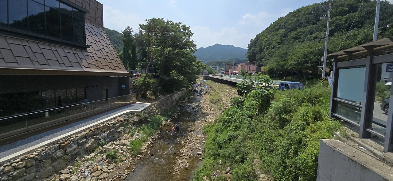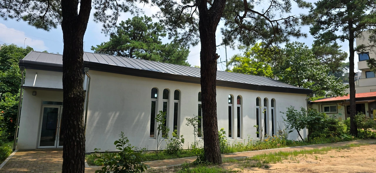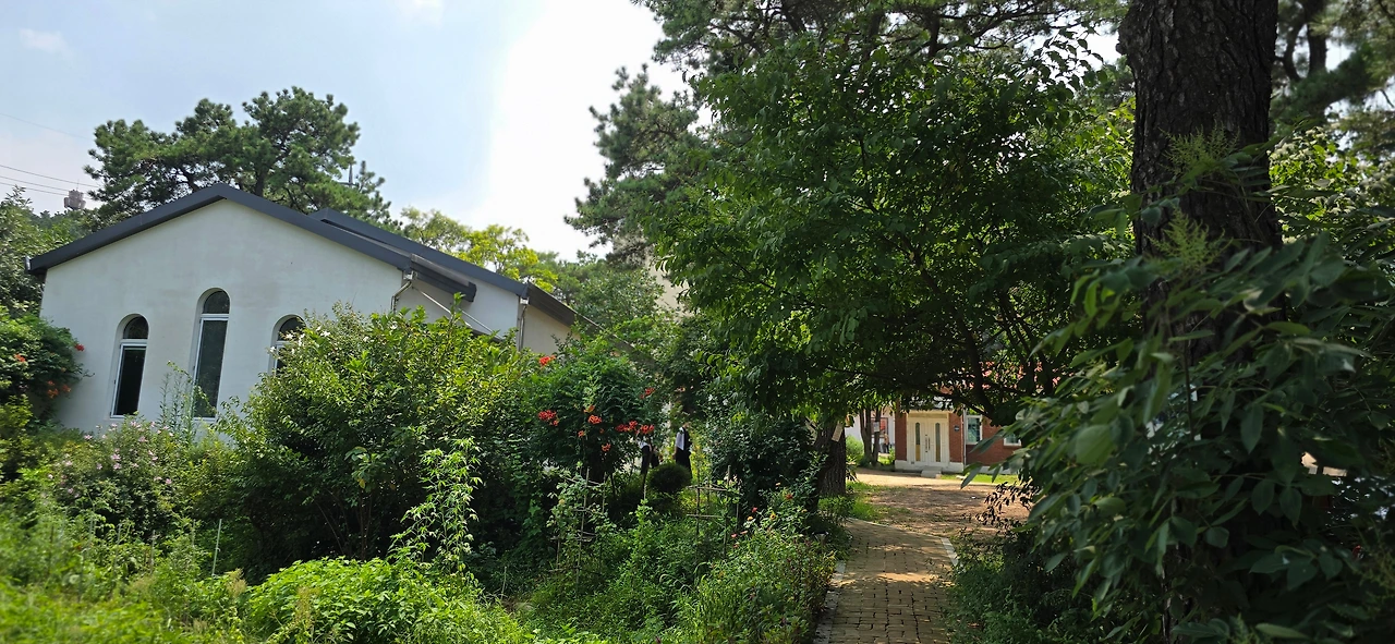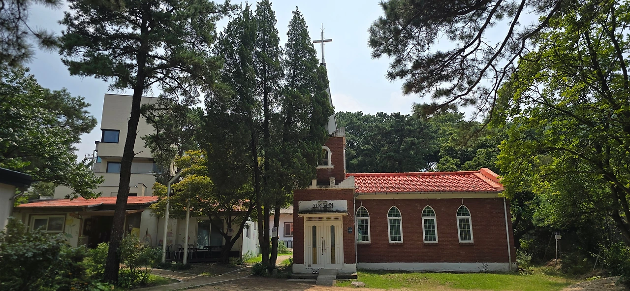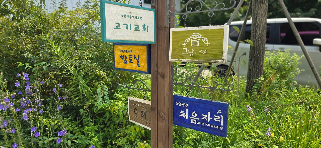 8월 4일 가장 더운 날 바라산산림욕장을 지나 바라재를 넘어 터덜터덜 동천동 방향으로 하염 없이 걸어 내려왔다. 길고 긴 골이었지만 끝은 있었다. 길을 걷다가 책에서 본 지명이 나타났다. 고기교회다. 저절로 발걸음은 교회 안으로 향했다. 참 아늑했다. 갑자기 아이들이 많이 보인다. 어른들도 나 같은 처음 보는 외지인에게 목례로 인사한다. 교회는 작았지만 정겨워 보였다. 그 옆은 책에서 본 밤토실어린이작은도서관이었다. 어린이들이 분주히 드나들고 있었다. 이따금 어른도... 궁금했다. 근처엔 온통 식당이고 주택은 잘 보이지 않던데 이 어린이들은 어디서 왔을까 하는 것이다. 멀리서 걸어서 왔거나 버스를 타고 왔을지도 모르겠다. 고기동이 놀랄 만큼 상업화되어 왔고 지금도 그렇지만 아직도 마을 공동체는 살아 있음을 느낄 수 있었다.