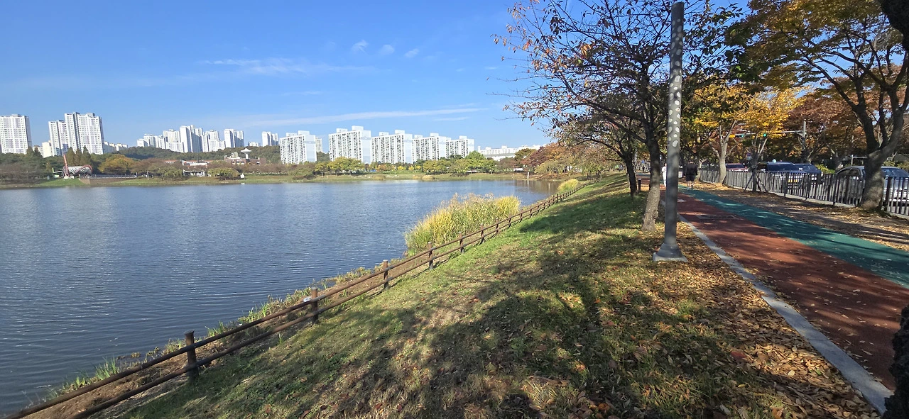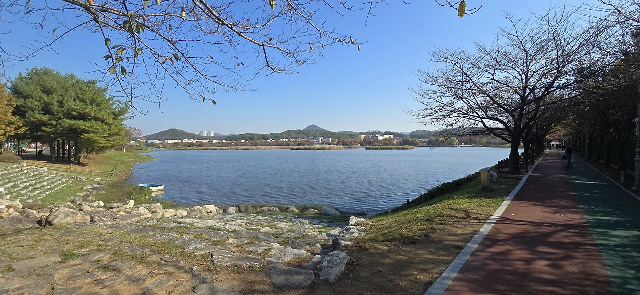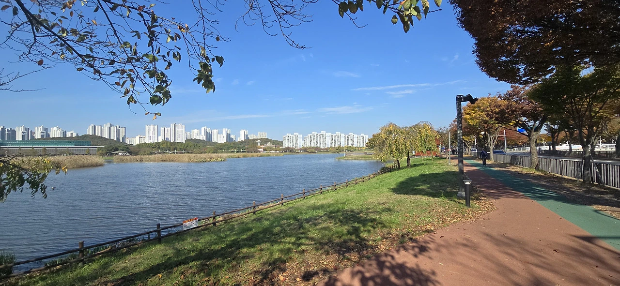 아직도 10시 50분 셔틀버스를 타려면 한 시간이나 남았다. 무료하게 기다릴 순 없어 근처 공원으로 갔다. 알고 보니 화랑유원지였다. 공원이라고 해도 될 텐데 왜 유원지인지는 모르겠다. 이렇게 근사한 공원이 있을 줄은 까맣게 몰랐다. 더구나 90년대에 난 안산에 살지 않았던가! 그때 성포동에 살았기 때문에 이곳까지 와보지 못했던 듯하다. 아마 그때도 있었을 텐데...