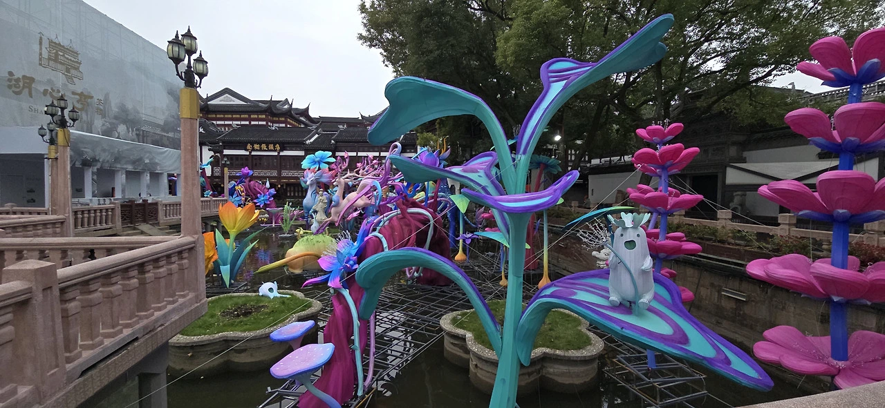 할 수 없이 빙 돌아서 豫园 쪽으로 향하는데 길 왼편에 사철처럼 보이는 건물이 있었다. 白云观이었다. 나중에 알고 보니 도교 사원이었다. 豫园이 차츰 가까워 왔다. 갑자기 가게가 많아졌고 사람들이 바삐 움직이고 있었다. 무엇보다 먼저 눈에 띈 곳이 香烛店이었다. 향과 초를 파는 곳이다. 한 군데가 아니고 여러 가게가 붙어 있었다. 누가 이런 물건을 사가는가. 왜 여기서 그걸 팔까. 점점 더 豫园이 가까워졌다. 처마가 쀼죽쀼죽한 중국 특유의 고건축이 여기저기 서 있었다. 그것들은 대개 지금 상점으로 쓰이고 있어 보였다. 豫园은 16세기 명나라 때 반윤단이라는 사람이 아버지의 노후를 위해 만들었다 들었는데 어떤 건물이 당시에 지어진 건물이고 어떤 게 현대에 지어진 건물인지 당최 알 수가 없다. 요컨대 豫园은 너무나 상업화돼 있었다. 뭐가 뭔지 알기가 어려웠다. 더구나 한창 공사중이었다. 입장료를 내는 데가 보이지 않았다. 아마 공사 때문인 듯했다. 문화재 보수 공사일 것이다. 그러나 호수에서 꽤 신기한 걸 보았다. 종이로 만든 화려한 색깔의 거대한 꽃이 연못 위를 가득 메우고 있었다. 그 가운데에 한 여인의 조각상이 시선을 사로잡았다.