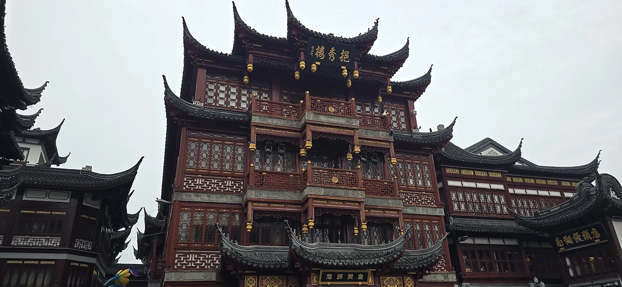 豫园을 이리저리 둘러보다 나왔다. 아침에 들렀던 터라 낮의 번잡한 광경은 보지 못했다. 그러나 광장에 경찰 차가 서 있는 거로 보아 낮이나 저녁엔 꽤나 붐비겠다 싶었다. 豫园은 상하이의 이름난 관광지이니 그럴 것이다. 근현대 사적이 그득하고 더구나 루자쭈이 부근은 초현대식 건물이 즐비한데 豫园이 그나마 명나라 시대의 유적이 아닌가 싶기는 한데 건축 양식은 옛날 건물 같아 보였으나 과연 모든 건물이 다 명나라 시대의 것인지는 믿음이 잘 가지 않았다. 요컨대 豫园은 너무나 상업화되었다. 상점이 너무 많다는 것이다. 그런데 알고 보니 상하이의 다른 관광지인 靜安寺도 사정이 그리 다르지 않았다. 豫园을 나와서 지하철 豫园역으로 향했다. 그 역이 유튜브에서 봤을 때 장식이 여간 화려하지 않았기 때문이었다.