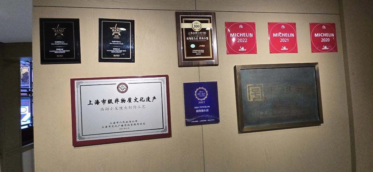 연못 부근에 3층 건물이 있었고 입구에 어떤 사람이 지키고 서 있었다. 그러나 그는 내가 그 앞을 지나쳐도 왜 가냐고 묻거나 제지하지 않았다. 그래서 건물 안으로 들어가 계단을 올랐다. 2층을 지나 3층에 이르니 그곳은 식당이었다. 놀랍게도 벽에 미슐랭 별표를 받은 식당임을 알리는 액자가 걸려 있었다. 2020, 2021년은 있는데 그 후엔 없는 걸 보면 최근 들어서는 별을 받지 못했다는 건가. 3층에 이르니 종업원이 어서 오라는 손짓을 했다. 그러나 식사를 하러 간 게 아니고 그냥 뭔가 싶어서 갔을 뿐이라 되돌아나왔다. 이름은 南翔이었고 만두 전문점이었다. 그런데 한편으로 天下一笼이라는 글자가 쓰인 액자도 벽에 걸려 있었다. 笼이 바구니라는 뜻이니 天下一笼은 천하 제일의 바구니가 아니겠나. 만두를 바구니에 담아 내놓으니 만두 맛이 좋다는 뜻이겠다 싶다.