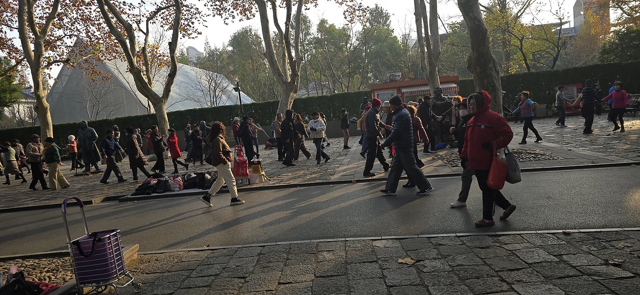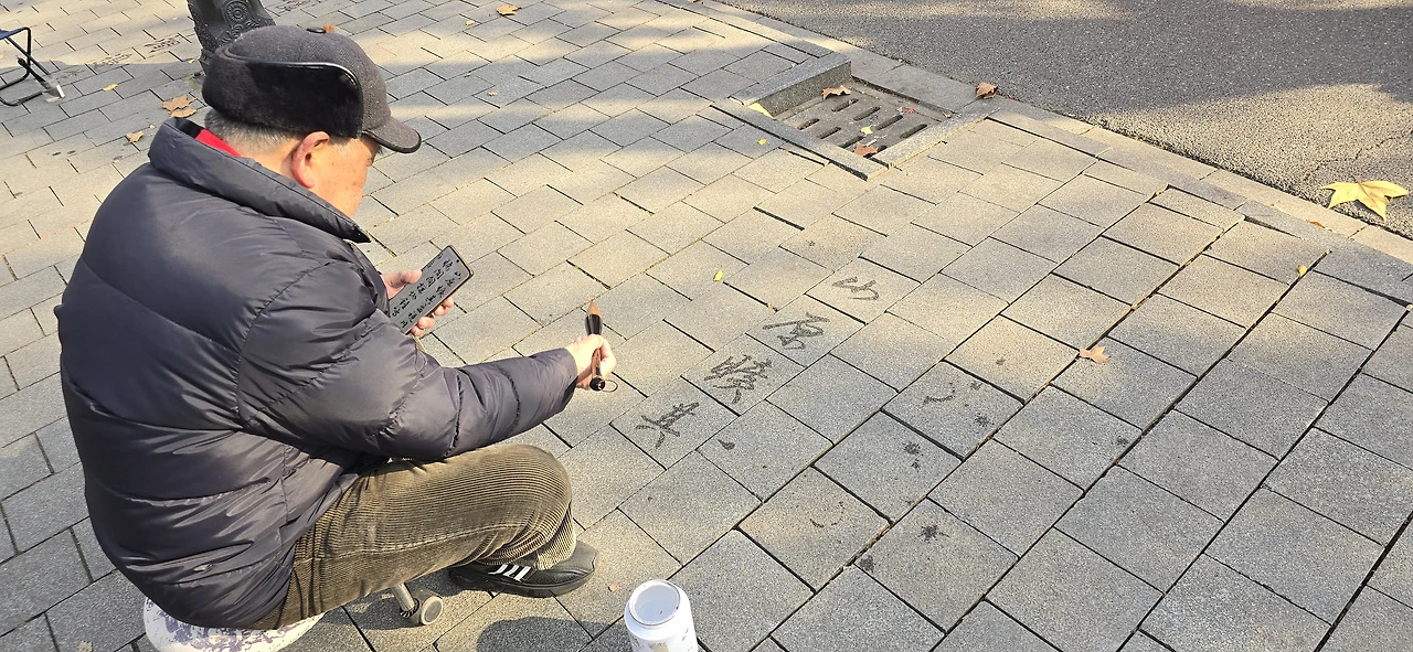 어디서나 춤추고 체조하는 사람들을 만날 수 있었지만 다른 색다른 광경도 목도했다. 길바닥에 물로 붓글씨를 쓰는 사람들이 있었다. 그들은 붓을 물에 묻힌 뒤 한시로 보이는 글을 써 나가고 있었다. 그런데 그 글씨가 한눈에 보아도 여간 세련되지 않았다. 명필이라 해도 손색없는 글씨였다. 그들은 왜 저렇게 길바닥에 글씨를 쓰는 걸까. 자기만족일까. 남들에게 자기의 글씨를 자랑하고 싶어서일까. 돈을 바라는 것은 아닌 듯했다. 돈통이 없었으니까. 어쨌거나 한자의 본고장에서 맵시 있게 글씨 쓰는 사람들을 보는 것은 전혀 뜻밖의 경험이었다. 공원을 나오는 순간까지 사람들은 곳곳에서 무리지어 춤을 추고 있었다. 확실히 한국사람들과는 다른 점이었다. 한국에서도 이따금 노인들이 흥겹게 춤추는 모습을 볼 수 있기는 하나 루쉰공원 도처에서 본 장면과는 도무지 질적으로나 양적으로나 비교할 바가 못 된다. 루쉰공원은 내게 깊은 인상을 남겼다.