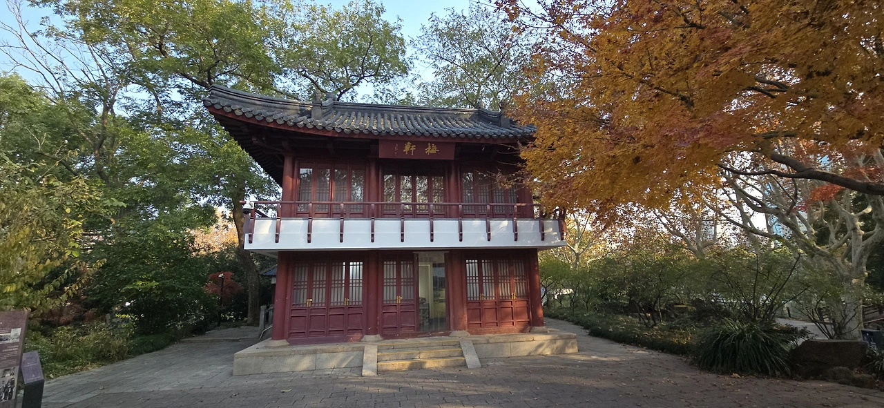 공원 안으로 들어설 때부터 분위기가 심상치 않았다. 도처에 사람들이 무리 지어서 춤을 추거나 체조를 하고 있었다. 그리고 그 사람들은 대체로 노인들이었다. 노인들이 참 부지런하고 열정적이기도 하다. 어떤 곳에선 수십 명이, 또 어떤 곳에선 십여 명이, 어디선 너댓 명이, 그리고 어떤 데선 심지어 혼자서 무언가 율동하고 있었다. 가히 춤과 체조의 세상이었다. 한편으로 한 구석에는 서울대공원처럼 놀이시설도 있었다. 아침이라 아직 시작을 하지 않아서 그렇지 놀이기구들이 하루 영업을 준비하고 있었다. 좀 더 안으로 들어가니 루쉰기념관이 있었다. 루쉰은 중국 근대문학의 선구자와 같은 인물이다. 아큐정전은 그의 대표작으로 알려져 있다. 루쉰이 "한자가 사라지지 않으면 중국이 망한다."라 했다는데 그의 예언은 실현되지 않았다. 한자를 쓰면서도 중국은 미국과 패권을 놓고 겨루는 정도에까지 왔지 않나. 공원을 걸으며 끊임없이 춤을 추거나 체조하는 사람들과 마주쳤다. 루쉰공원은 여간 사람들이 즐겨 찾는 공원이 아니었다. 수목도 꽤 울창했다. 심지어 야자수도 보였다. 공원 가운데는 호수가 펼쳐져 있었고 오리 같은 동물들이 유유히 노닐고 있었다. 그런데 윤봉길 의사의 유적은 대체 어디 있단 말인가. 좀체 나타나지 않더니 한 바퀴 거의 돌 무렵 윤 의사의 유적지인 梅軒이 가까워졌다. 공원 안 팻말에 씌어 있었다. 그리고 놀라운 것이 그곳은 입장료를 내야만 들어갈 수 있었다. 루쉰공원은 무료 입장이지만 공원 한복판에 있는 梅軒은 아니었다.