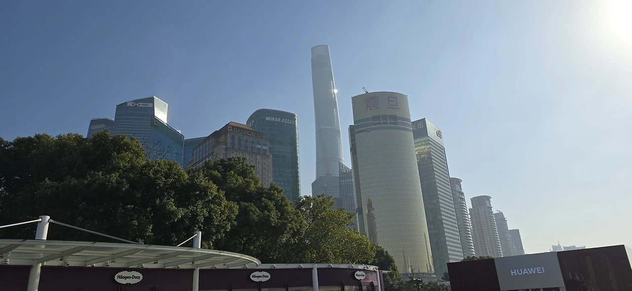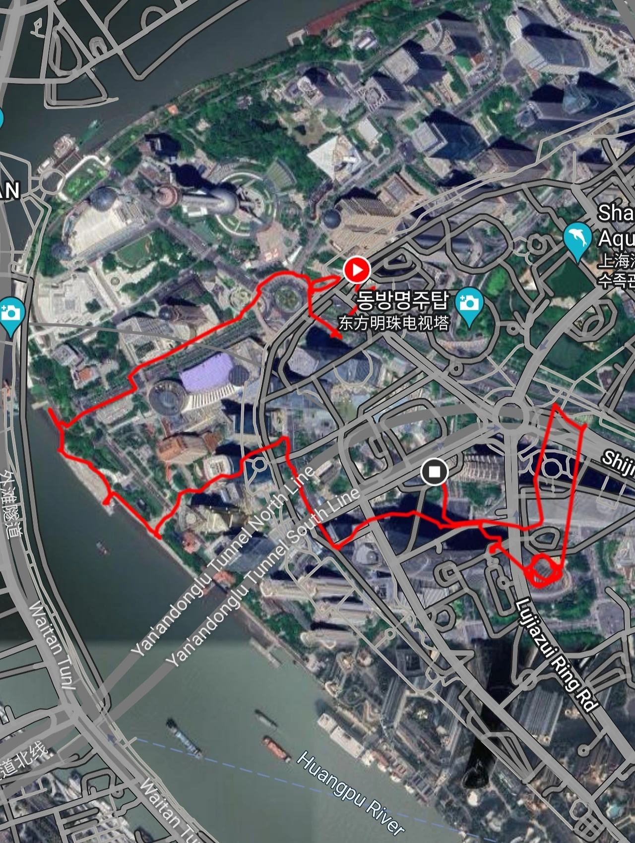 수향마을 七寶古鎭을 떠나 이번 여행의 마지막 행선지로 간 곳은 루자쭈이였다. 그곳에 중국에서 제일 높은 상하이타워가 있고 동방명주탑이 있다. 지하철을 40여 분 타고 世纪大道역에서 내려 2호선으로 갈아타고 루자쭈이역에서 내렸다. 이곳은 여행 첫날 공항에서 나와 맨 먼저 온 곳이다. 그곳을 출국 직전 다시 찾았다. 이곳에서 두 군데를 보고자 했다. 먼저 황푸강 강변을 거닐어 보고 이어서 상하이타워 전망대에 올라 시내를 굽어보는 것이다.