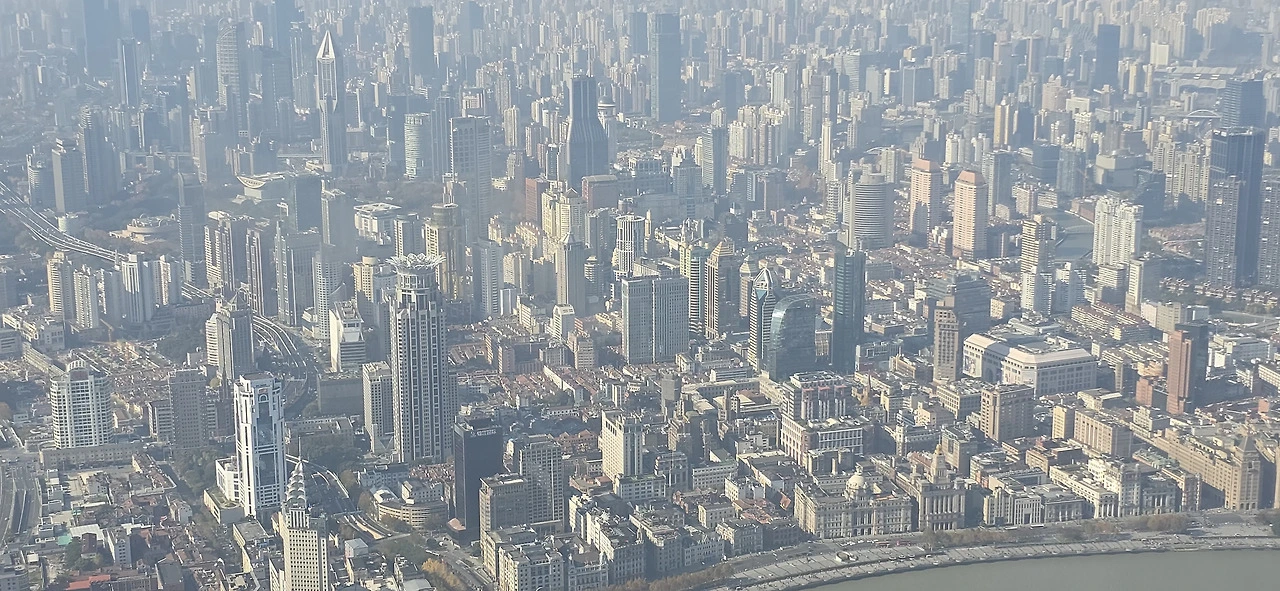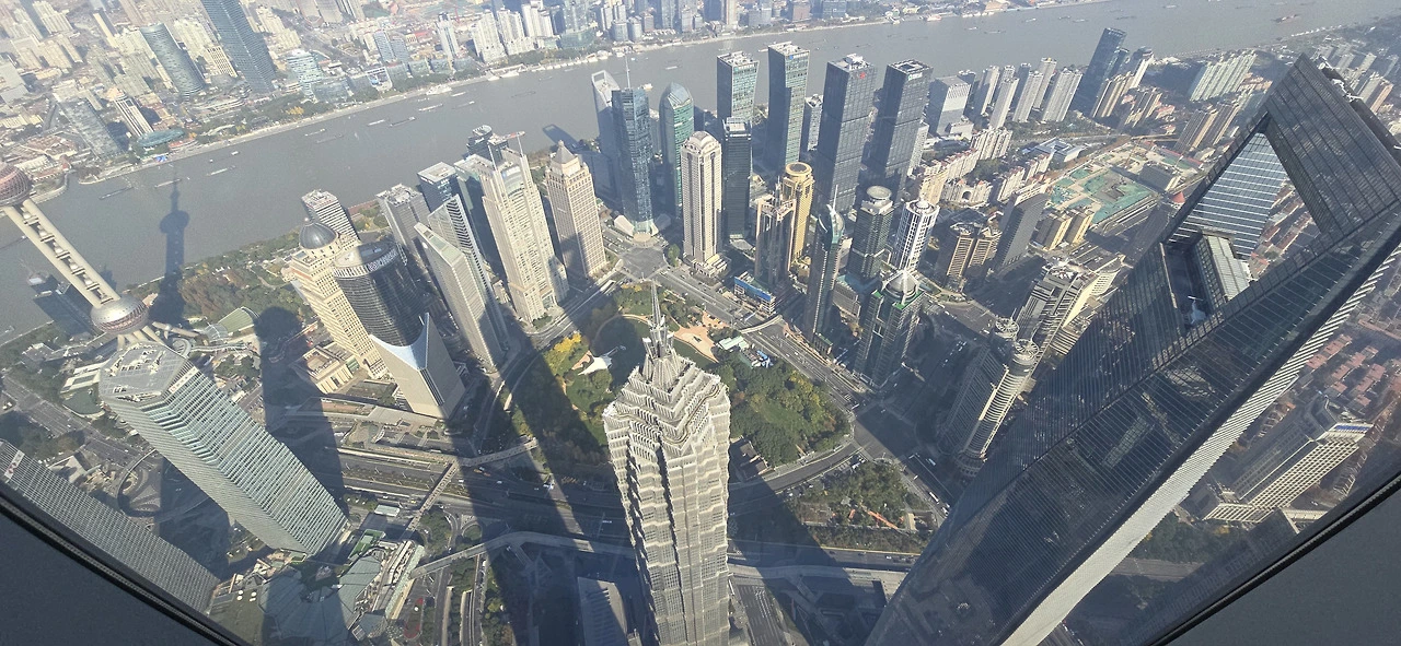 가는 길은 모른다. 그러나 우뚝 솟은 상하이타워를 향해 가다 보면 그곳에 이르지 않겠나. 도중에 샹그릴라호텔도 지나고 무엇보다 미래에셋빌딩 옆으로 지났다. 한글 '미래에셋'은 없었지만 영어 Mirae Asset은 있었고 중국어 未来资产大厦가 보였다. 그 옆을 지나니 더욱 상하이타워가 가까이 다가왔다. 드디어 횡단보도를 건너니 상하이타워였다. 观光厅OBSERVATORY라 쓰인 기둥이 빌딩 밖에 세워져 있었다. 전망대 입구라는 뜻이다. 표를 입구에서 샀다. 나처럼 현장 구매하는 사람보다는 이미 인터넷으로 사 온 사람이 많아 보였다. 입구에서 보안점검은 대단히 까다로웠다. 공항에서의 보안검색 못지않았다. 검색을 통과하니 사진을 공짜로 찍어준다고 했지만 사양했다. 엘리베이터에 탔다. 실로 놀라운 속도로 엘리베이터는 치솟기 시작했다. 순식간에 전망대가 있는 118층에 다다랐다. 어마어마한 광경이 펼쳐졌다. 상하이 시내가 아래로 펼쳐져 있었다.