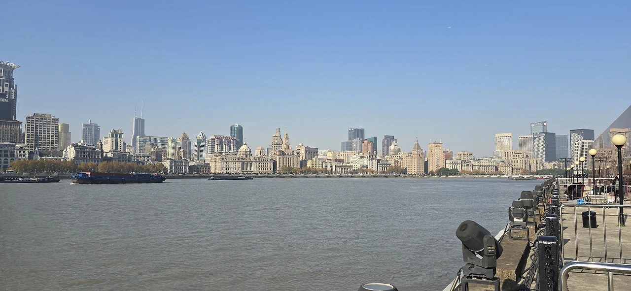 동방명주가 가까이 보는 고가도로에서 황푸강 쪽으로 난 계단을 내려갔다. 그쪽은 사람이 거의 없었다. 황푸강 강변 산책로에 이르러서도 역시 사람은 그리 많지 않았다. 건너편 와이탄 쪽 강변 산책로가 인산인해였던 것과 비교하면 너무나 대조적이다. 접근하기가 쉽지 않아서일 것이다. 조금씩 남쪽으로 걸어갔다. 강변에 오래되고 유서 깊어 보이는 카페, 레스토랑들이 띄엄띄엄 서 있었다. 황푸강에는 여전히 화물선이 계속해서 바다를 향해 달리고 있었다. 가끔 반대 방향으로 가는 배도 보였다. 강가라 그런지 바람이 조금 세게 불었다. 2시 비행기를 타려면 12시까지는 공항에 가야 하리라. 한 시간 남짓밖에 남지 않았다. 그렇다면 이제 상하이타워에 올라야지 하는 생각에 상하이타워를 향해 발걸음을 돌렸다.