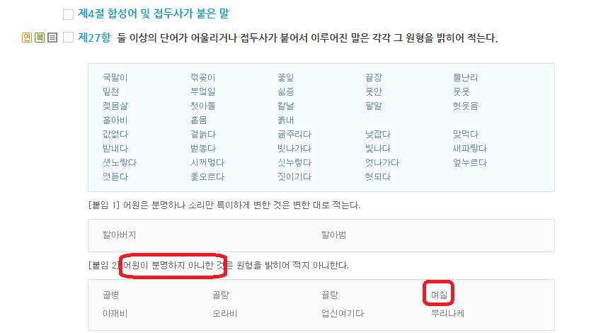 그 이유를 한글 맞춤법 제27항은 다음과 같이 밝히고 있다.