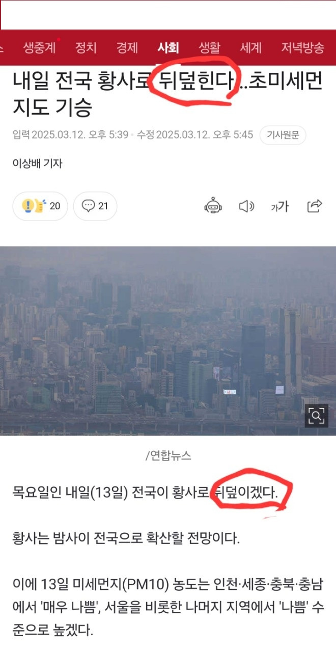 제법 이름 있는 매체에서 내보낸 기사 제목에 '뒤덮힌다'가 있었다. 뭔가 이상하다. '뒤덮인다'라야 하지 않나. 다행히 기사 본문에는 '뒤덮이겠다'라 했다. 바르게 썼다.