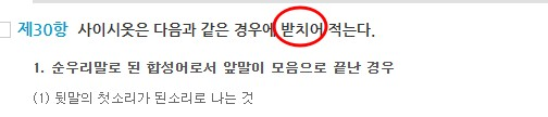 민법에는 참으로 많은 '그러하지 아니하다'가 나온다. 일상에서 사람들은 누구나 '그렇지 않다'고 하지 '그러하지 아니하다'라고 하는 사람은 없다. 그러나 법은 '나 법이요' 하고 티를 낸다. 법은 뭔가 달라야 한다고 믿는 모양이다. 한글 맞춤법은 민법과 같은 은 아니고 행정부(문화체육관광부) 고시 사항이다. 고시도 넓은 의미의 법이다. 한글 맞춤법이란 말이 들어 있지 않나. 한글 맞춤법 제30항은 다음과 같다.