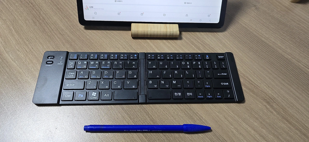 포장을 뜯고 페어링을 시작했다. 세 기기까지 연결할 수 있다고 했다. 두 기기에 연결이 필요했다. 하나는 갤럭시탭이고 하나는 스마트폰이다. 이번에 구입한 블루투스 키보드는 페어링 과정이 살짝 복잡했다. 자동으로 기기가 뜨지 않았다. 키보드에다 지정된 명령어를 입력해주어야 했다. 설명서에 적힌 대로 말이다. 어떻든 그 과정을 거치니 갤럭시탭에도 등록이 되었고 스마트폰에도 등록이 되었다.