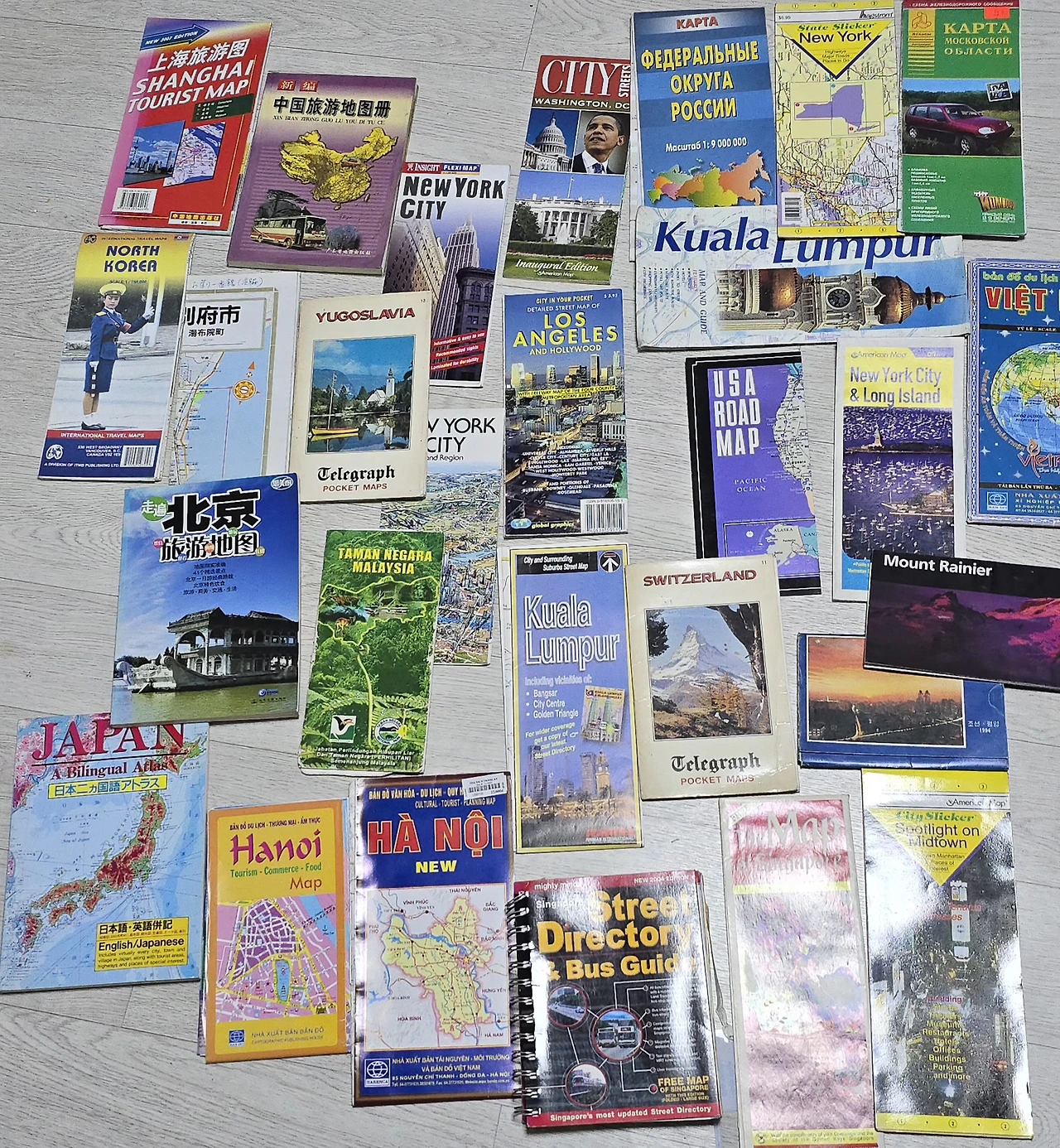 미국, 중국, 일본, 러시아, 베트남, 싱가포르, 말레이시아 등의 지도가 아직 남아 있는데 앞으로 그런 나라에 다시 가게 될 경우 이 지도를 다시 들고 가게 될까. 안 그럴 것 같다. 스마트폰에 지도가 들어 있는데 괜히 짐만 되지 않겠는가.