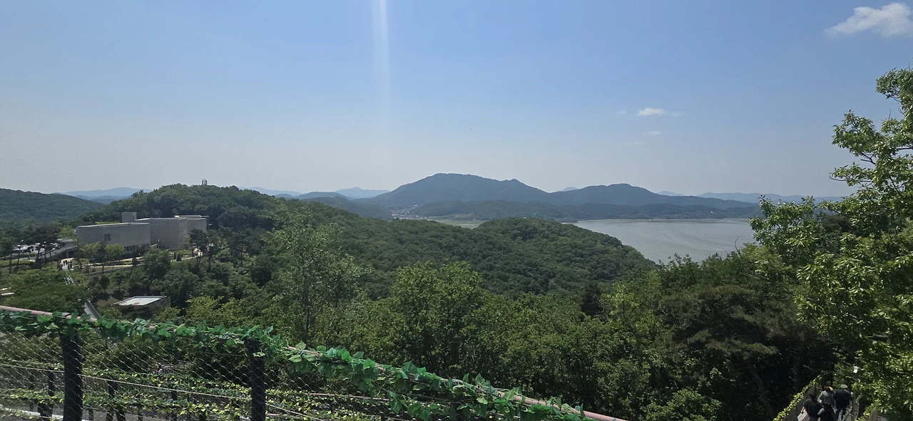 그런데 이게 웬 일인가. 스타벅스 앞 넓은 전망대에 전에는 듣지 못했던 괴상한 소음이 북쪽에서 들려와 귀를 자극하는 게 아닌가. 사람 목소리도 아니고 그렇다고 무슨 소린지 잘 짚이지도 않았다. 다만 웅웅거리는 소리가 여간 거슬리지 않았다. 도저히 그곳에 오래 있을 수 없었다. 대체 이 확성기 소음 공세는 언제부터 시작됐나? 그리고 그렇게 하는 이유가 무엇인가? 도무지 감을 잡을 수 없었다. 결국 오래 머물지 못하고 전망대에서 내려올 수밖에 없었다.