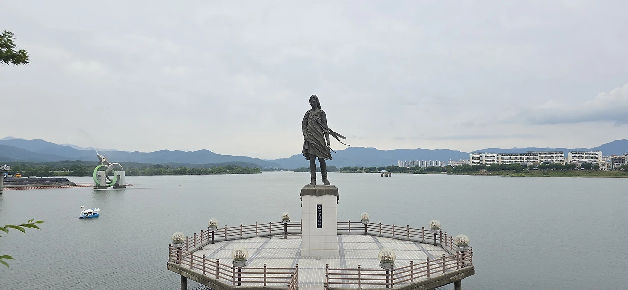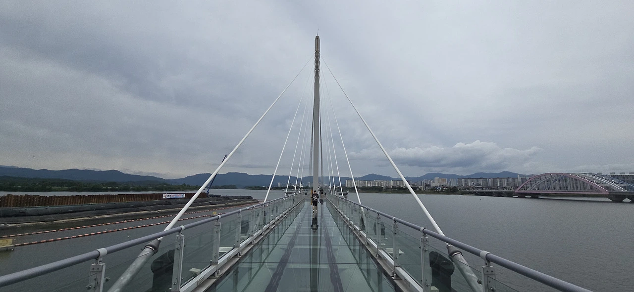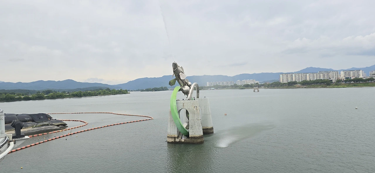 북쪽으로 향했다. 길은 둘이었다. 위쪽은 나무데크길, 아래쪽은 시멘트길이었다. 딱딱한 시멘트길보단 나무데크길이 좋아 데크길을 걷다 보니 소양강스카이워크가 나타났다. 예전엔 못 보던 것인데 호수 위로 직선 유리길이 깔려 있었다. 바닥을 보니 유리 아래로 물이 넘실거린다. 스카이워크 끝에 이르니 좀 떨어진 곳에서 물고기 조형물이 물을 뿜어내고 있었다. 다시 돌아나오는데 웬 외국인들이 이리도 많은지! 외국인들에게 소양강스카이워크는 단단히 소문이 난 듯했다. 스카이워크를 나와 얼마 안 가니 소양강처녀상이었다. 그런데 이상하다. 전에 이곳에 오면 스피커에서 소양강처녀 노래가 끝없이 반복되어 흘러나왔는데 이젠 아예 노랫소리가 들리지 않는다. 그리고 구경하는 사람도 없다. 스카이워크에 밀려난 모양이다. 춘천 하면 소양강처녀와 소양강처녀상이 떠올랐는데 이젠 좀 아닌 것 같다.