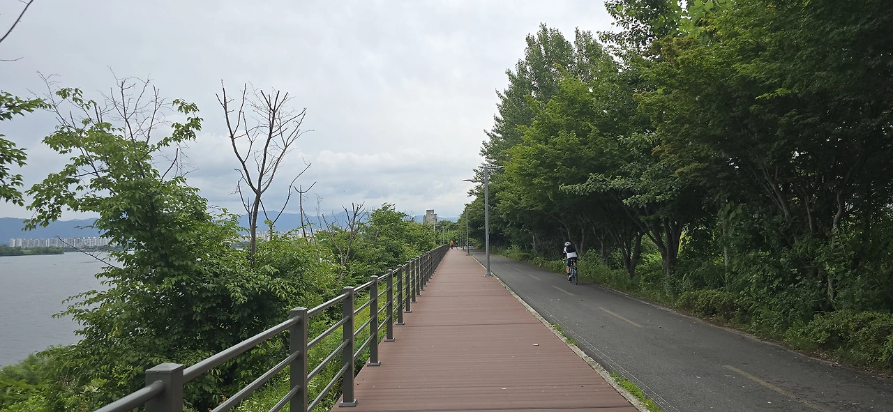 3주쯤 전에 춘천에 갔었다. 구봉산에 올랐다가 내려온 곳이 구봉산전망대카페거리였는데 춘천 시내를 내려다보는 전망이 압권이어서 입을 다물 수 없었다. 깊은 인상을 안고 서울로 돌아왔는데 오늘 다시 춘천을 찾았다. 오늘은 산이 아니라 강변 따라 줄곧 평지를 걸었다. 의암호나들길이었다. 소양강변길이라고도 하는가 보다.