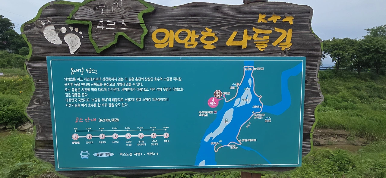 의암호나들길을 찾게 된 것은 순전히 인공지능 덕이다. 인공지능에 춘천에서 걷기 좋은 길을 추천해달라 했더니 춘천에는 봄내길이 1코스부터 8코스까지 있는데 그중 4코스가 의암호 둘레를 걷는 의암호나들길이라는 것이었다. 코스를 보니 언덕은 조금도 없이 시종 평탄한 길이어서 이내 마음이 끌렸고 춘천으로 향하게 됐다.