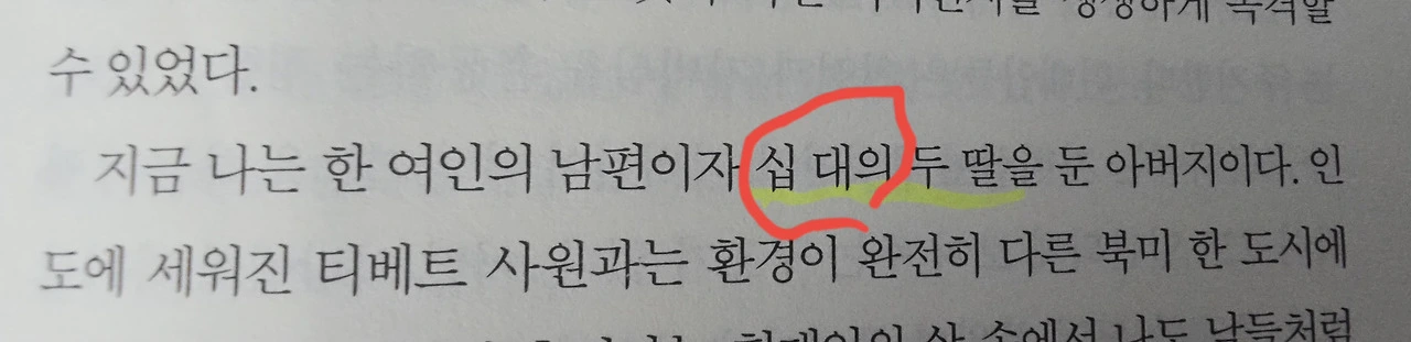 띄어쓰기에서는 조사 뿐을 앞에 오는 말과 띄어쓴 점, 조사 보다를 역시 앞말과 띄어쓴 점이 이상했다. 그러나 결정적으로 필자를 당황하게 했던 것은 십대라는 말을 십 대로 띄어쓴 것이었다.