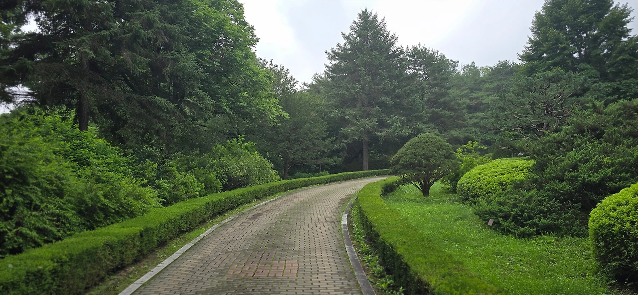 카페가 있기에 들어가 물을 한 병 사 먹고는 침엽수림 있는 곳으로 향했다. 전나무 숲이 있었다. 하늘을 향해 거목들이 쭉쭉 뻗어 있었다. 장관이었다. 점점 경사가 가팔라졌다. 다행히 길이 포장이 돼 있어 그리 힘들진 않았다. 한창 걷고 있는데 어딘가 낯익은 장면이 나타났다. 10년 전 이곳에 왔을 때 호랑이를 보고 깜짝 놀랐었는데 그 호랑이가 있던 사육장이었다. 지금은 호랑이가 없다. 봉화의 백두대간수목원으로 옮겨갔단다. 오르막이 있으면 내리막이 있는 법, 한참을 걸어내려오니 정문이 가까워졌다. 다시 매표소 앞으로 왔는데 이렇게 두 시간 가량 수목원을 걷고 나서야 비로소 전체적인 윤곽을 머릿속에 그릴 수 있었다.