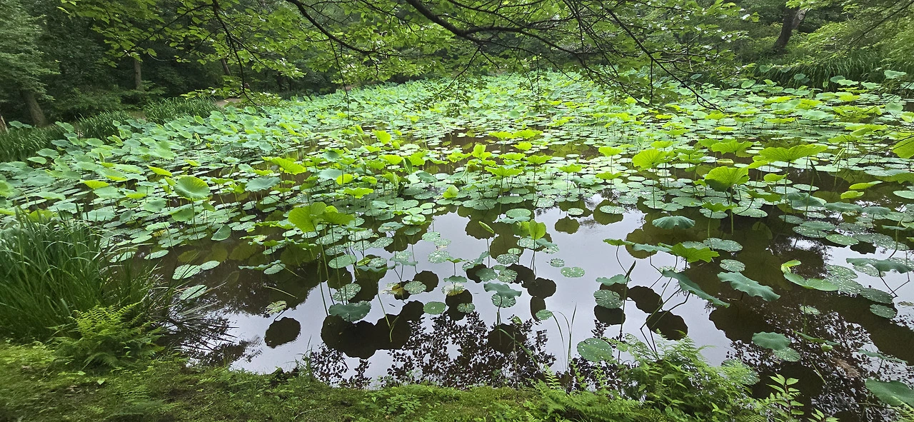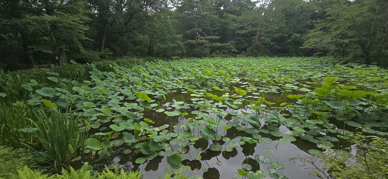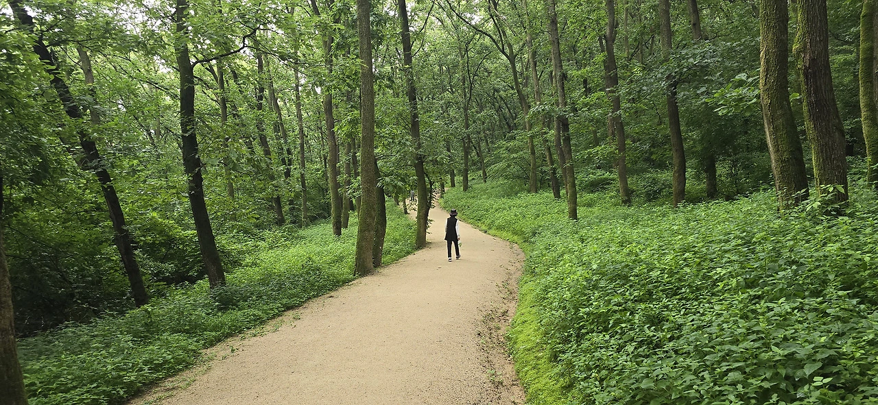 김포장릉은 능 자체보다는 장릉 안에 있는 산책로를 찾는 사람들이 더 많은 것 같았다. 꾸준히 줄을 지어 사람들이 걸어갔고 나도 따라갔다. 고즈넉하고 호젓해서 참 좋은데 항로가 하늘 위를 지나가고 있어 비행기가 끊임없이 날고 있는 것이 아쉬웠다. 김포공항으로 착륙하려는 비행기들이었다. 장릉 남쪽 끝에 큰 연못이 있었다. 지도에 장릉저수지라 돼 있는 곳이었다. 그러나 진정한 연못은 능 가까이에 있는 장릉연지였다. 수련이 연못을 온통 뒤덮고 있었다.