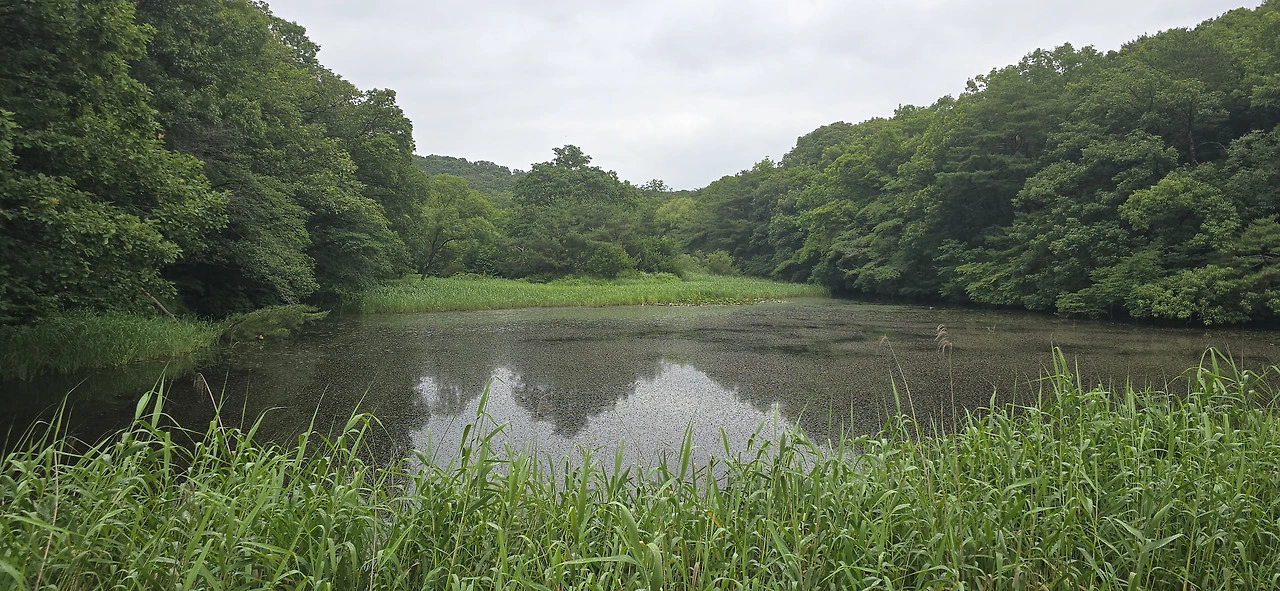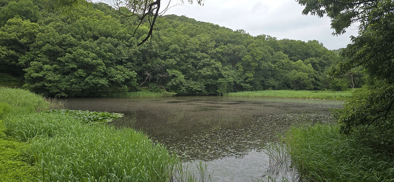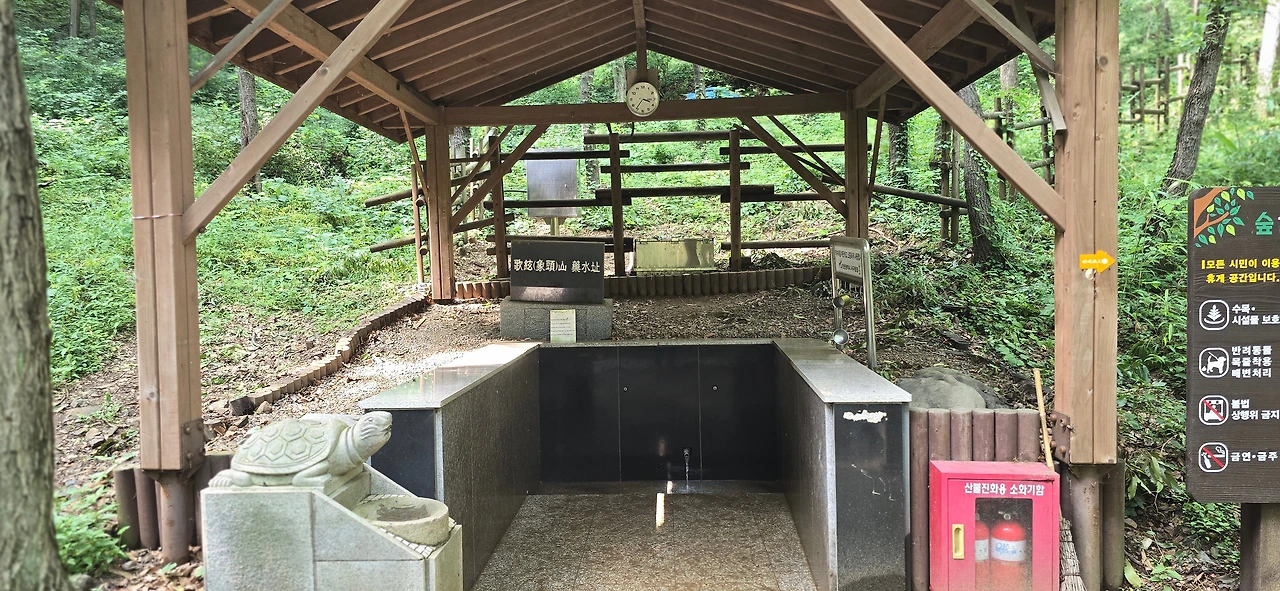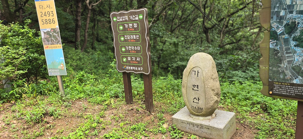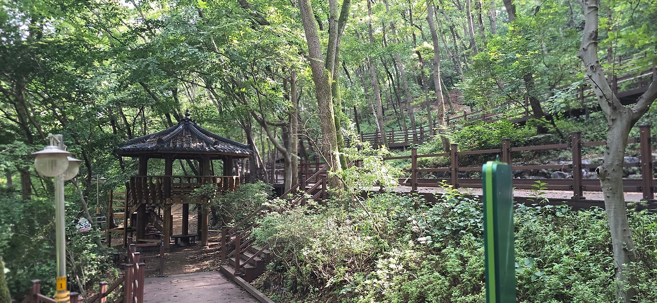 특이했던 것은 정상석이 두 군데에 있었다는 것이다. 하나는 215.3m, 다른 하나는 214.9m라 돌에 새겨져 있었다. 그러나 정상은 그 어느 것도 아닐지 모른다. 근처 높은 곳에 군부대가 있었고 그곳엔 갈 수 없었기 때문이다. 묘각사쪽으로 하산했다. 묘각사에서 그만 길을 잘못 들었다. 묘각사삼거리에서 서낭당고개로 내려올 생각이었는데 삼거리에서 무장애 데크길을 보고 혹해서 그리로 빠지고 말았다. 그러나 그곳도 좋았다. 가현산약수터에서 콸콸 쏟아져 나오는 약수를 실컷 마실 수 있었으니 말이다. 숲을 빠져나오니 낚시터가 있었다. 가현산낚시터였다.