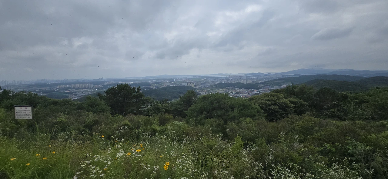 길이 참 얼기설기 많이 나 있었다. 처음 오는 곳이고 대체 어느 길을 택해야 할지 몰라 덮어 놓고 보이는 대로 올라갔다. 나중에 알고 보니 작은 오솔길로 올라갔다. 물론 큰길을 만나긴 했지만...... 사랑의쉼터라는 곳이 여러 갈래 길이 만나는 곳이었고 그곳에서 가현정을 향했다. 가현정은 산중에 자리한 아름다운 팔각정이었다. 그곳을 지나 더 올라가니 헬기장이 나왔는데 갑자기 전망이 탁 트였다. 가슴이 뻥 뚫리는 것 같았다.