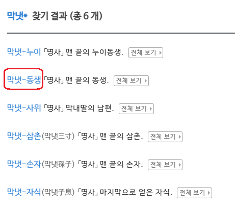 이런 의문이 떠나지 않고 있었는데 또 최근에 신문 기사 제목에 큼직하게 막냇동생이라 돼 있어 심사가 복잡해졌다. 막내가 들어가는 합성어를 국어사전에서 찾아보았다. 한결같이 막냇누이, 막냇사위, 막냇삼촌, 막냇손자, 막냇자식처럼 사이시옷을 넣었다. 사이시옷을 넣었다는 것은 이들 단어의 발음이 [망낸누이], [망내싸위], [망내쌈촌], [망내쏜자], [망내짜식]이라는 뜻이다. 그러나 나는 [망내사위], [망내삼촌], [망내손자]라는 발음만 들어보았지 [망내싸위], [망내쌈촌], [망내쏜자]라는 발음을 들어본 적이 없다. 내가 과문한 탓인가.