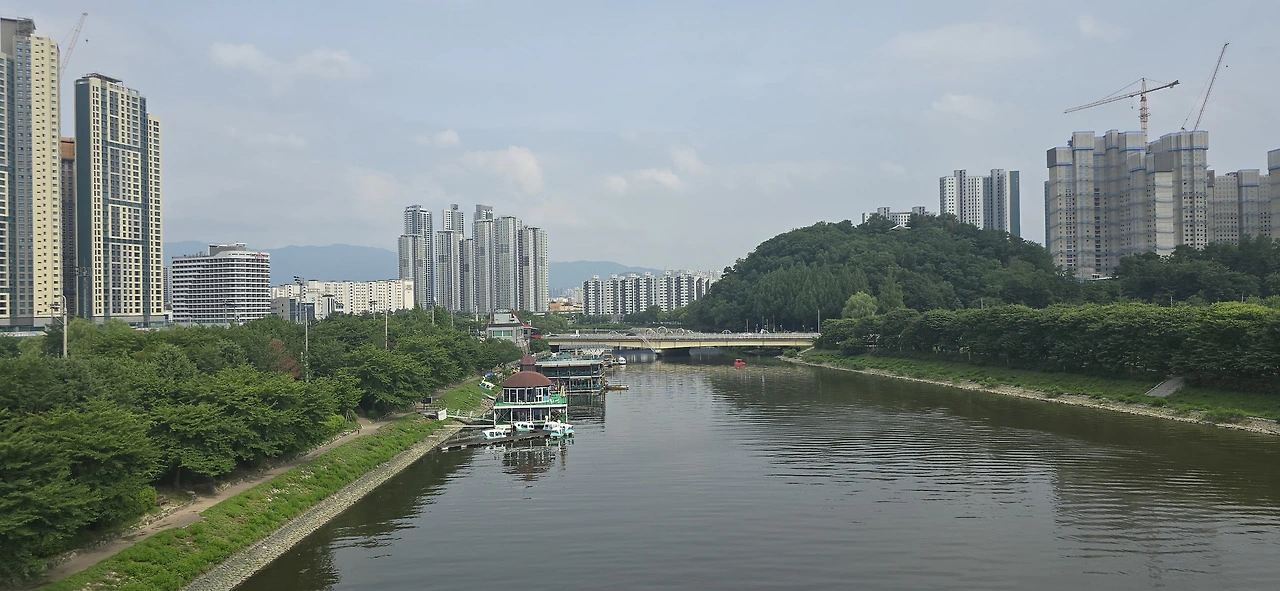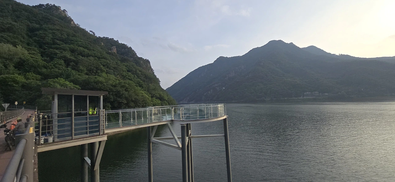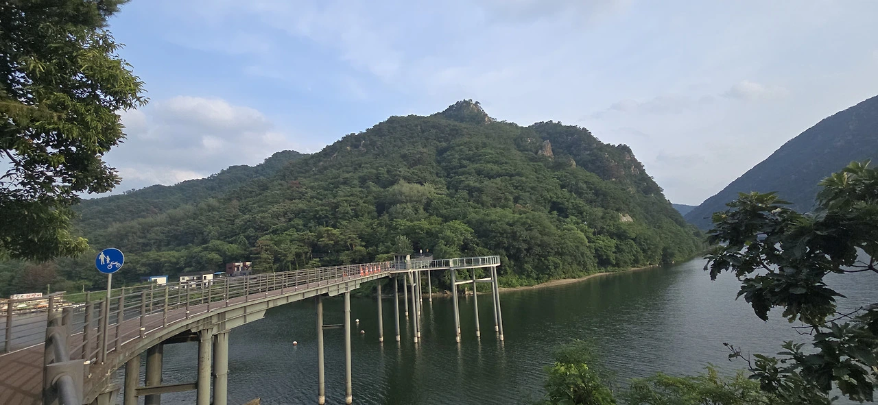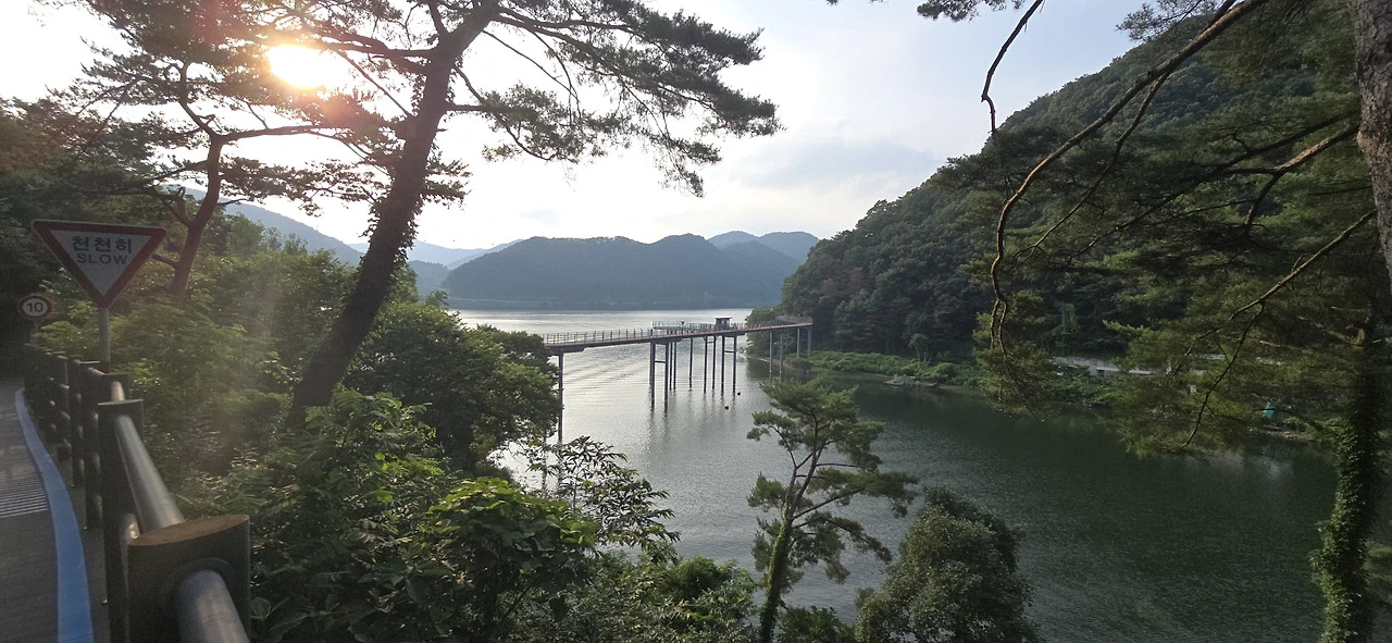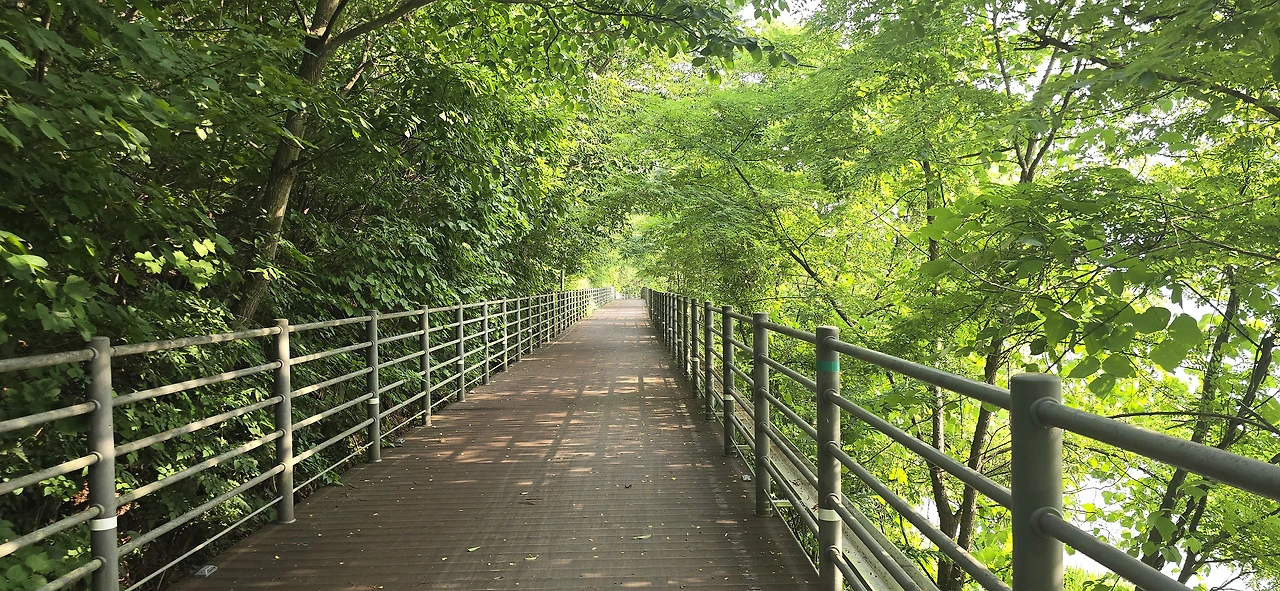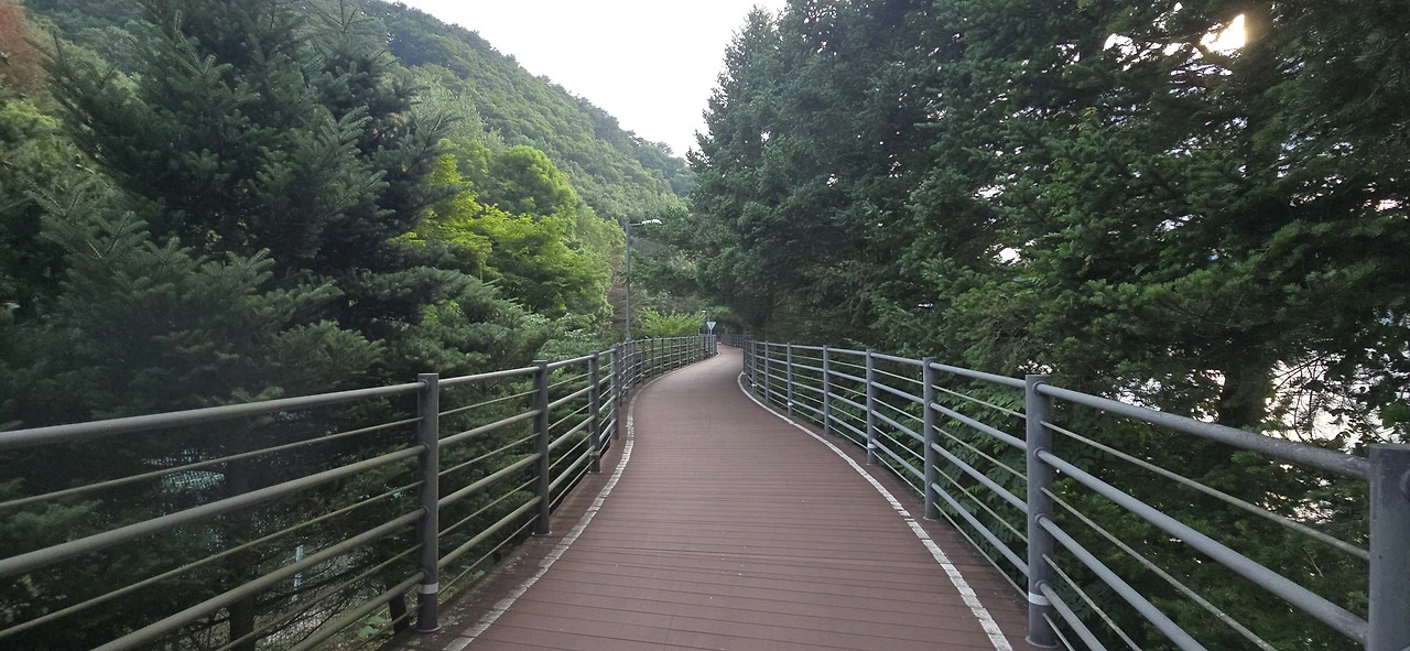 춘천삼악산호수케이블카 타는 곳에 이르러 편의점에서 음료를 사 먹으며 휴식을 취했다. 수분을 충분히 보충하니 다시 힘이 났다. 어디까지 가볼까. 신연교와 의암댐까지 가보나. 그러나 더위가 만만치 않았다. 숲속 데크길을 걸을 땐 그리 힘든 줄 몰랐지만 아스팔트 구간은 무척 힘겨웠다. 숲속 데크길과 아스팔트 구간이 계속 교차하는 행로였다. 결국 의암스카이워크에 이르러 더 갈 맘을 접었다. 조금만 더 가면 신연교, 의암댐인데....