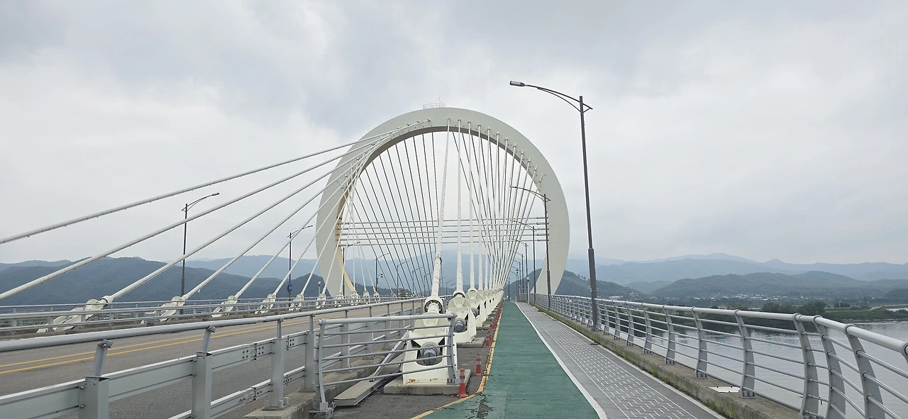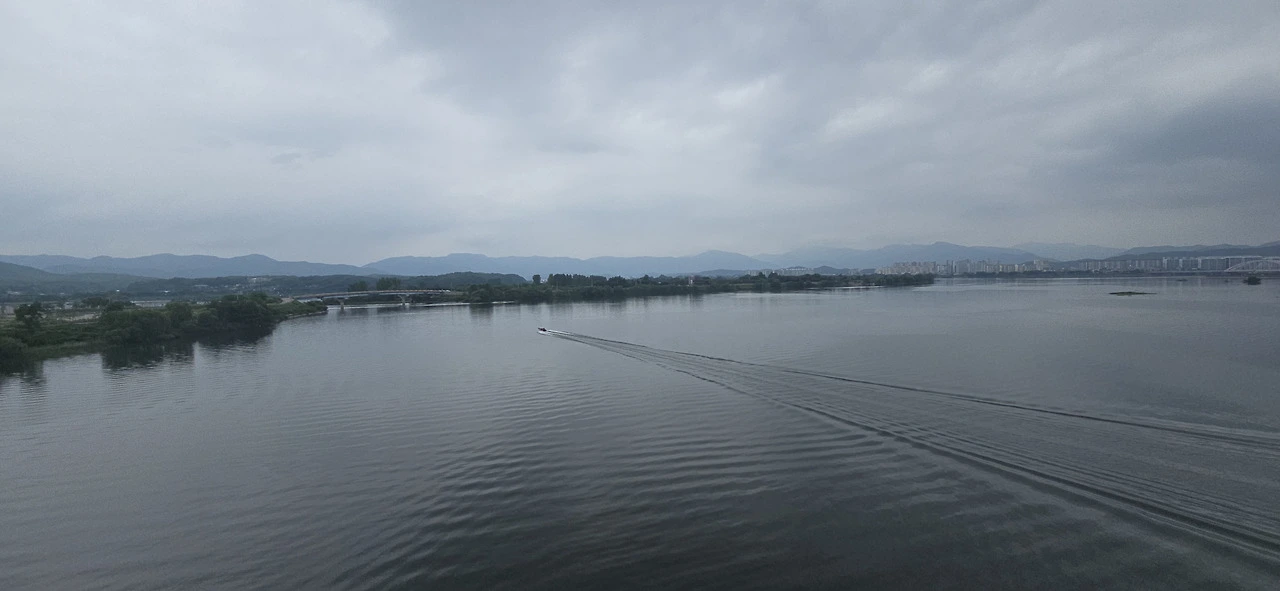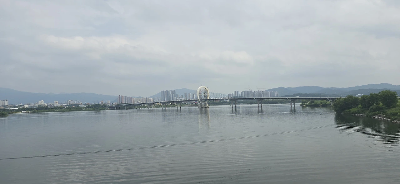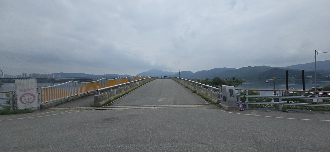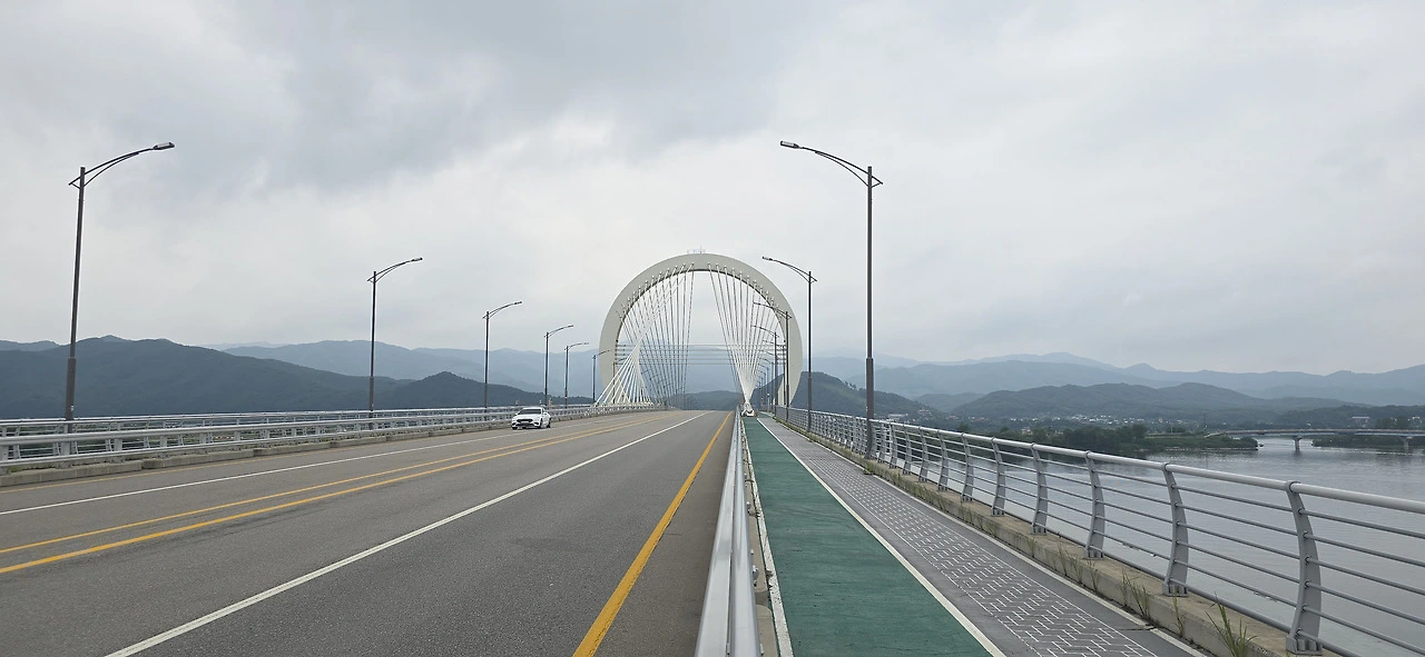 춘천역을 나와 바로 춘천대교를 넘기 시작했다. 찌는 듯한 여름은 이미 시작했고 기나긴 춘천대교를 걷는 사람은 나 혼자뿐이었다. 자동차만 드문드문 다리를 지나갈 뿐 사람은 보이지 않았다. 춘천대교 가운데에 위치한 거의 원에 가까운 아치는 멀리서 보나 가까이서 보나 참으로 아름답다. 둥근 원이 주는 편안함이 이만저만 아니다. 그래서 몇 번이고 길을 멈춰 그 아치를 폰 카메라에 담았다.