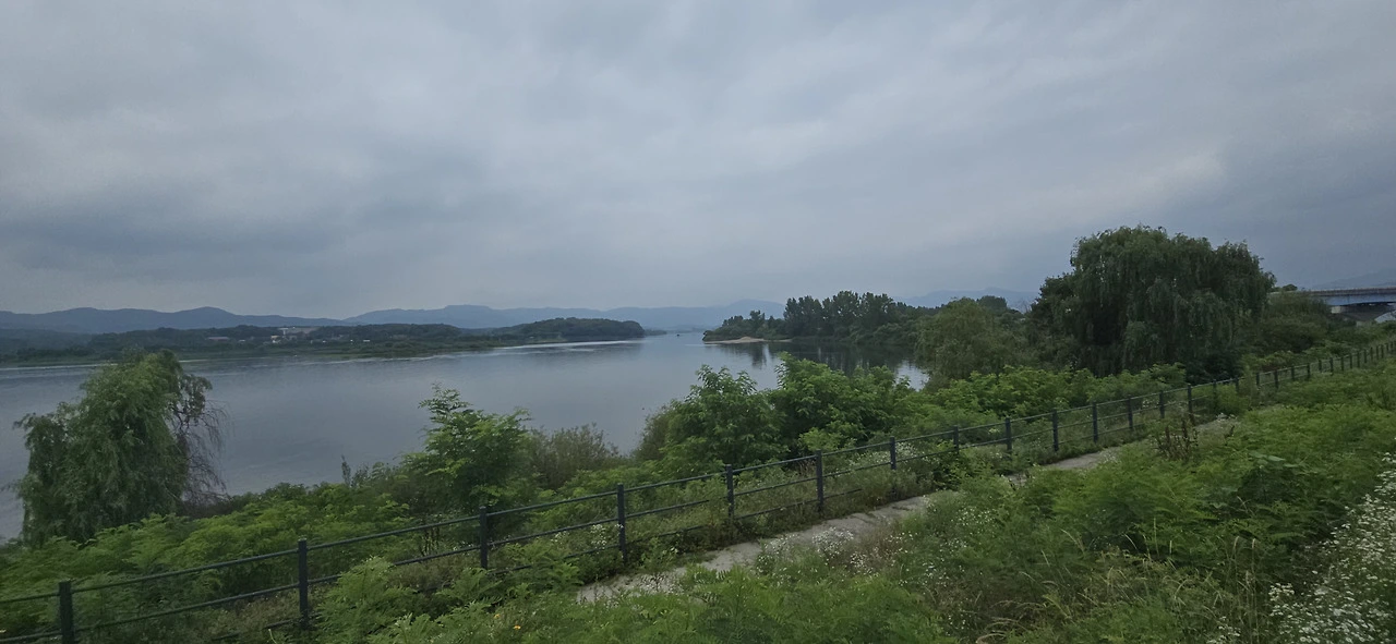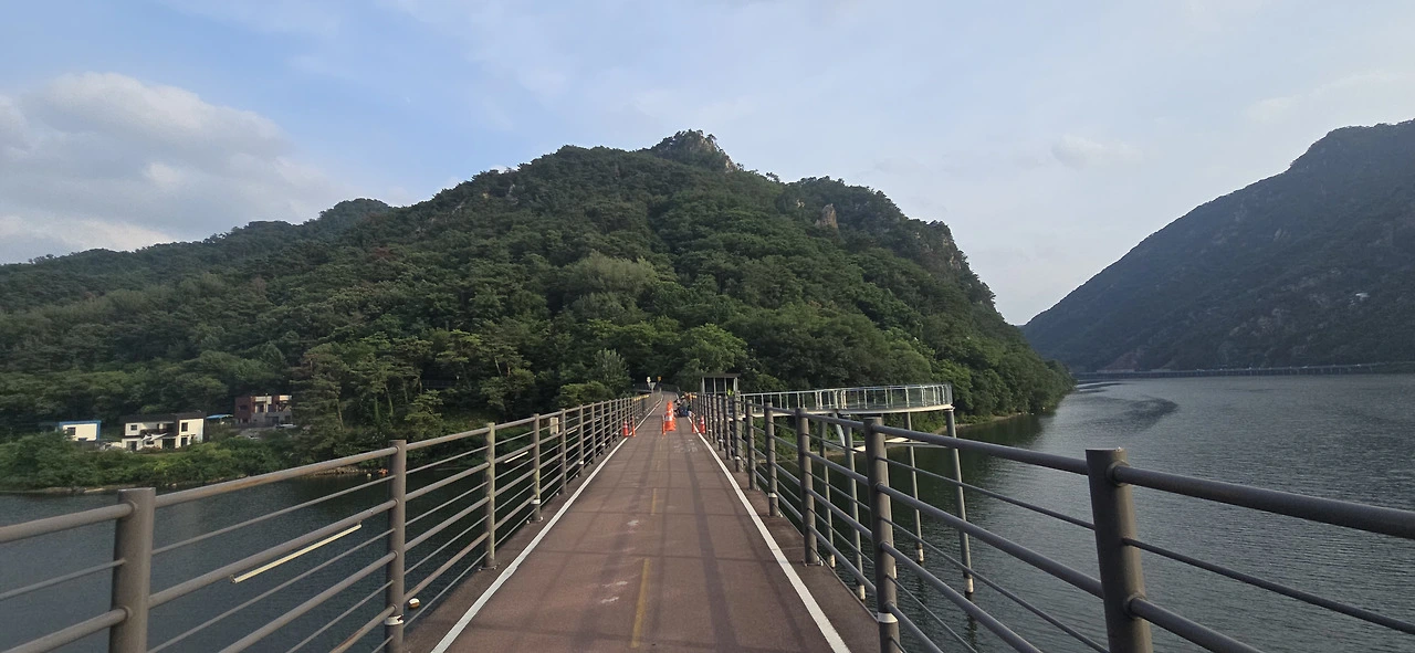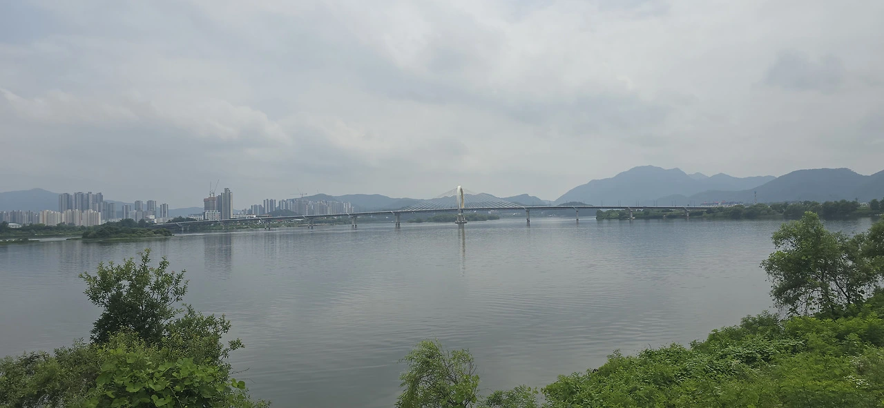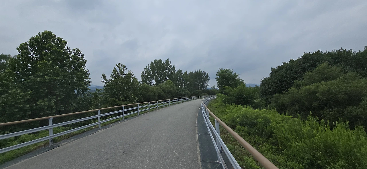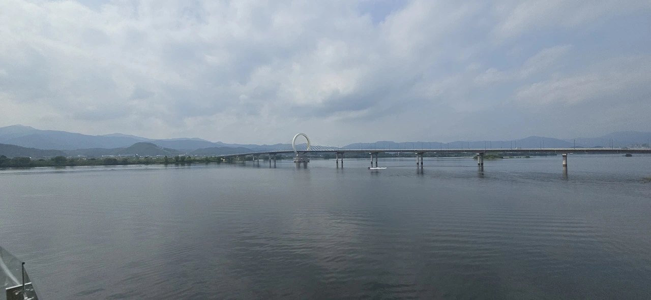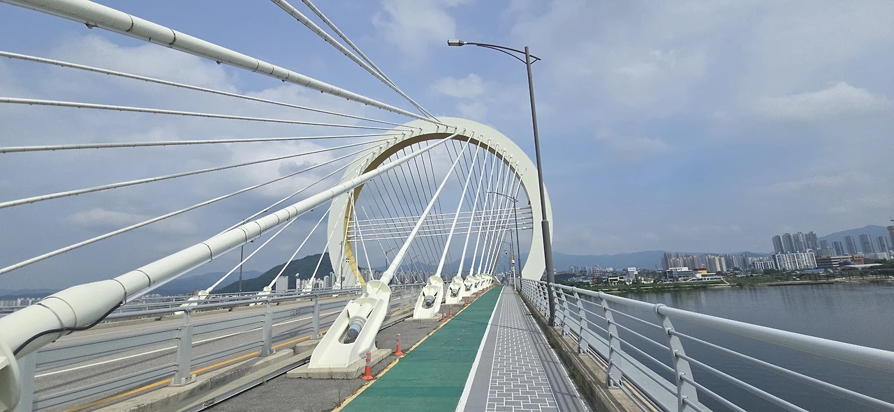 춘천역을 나와 바로 춘천대교를 넘기 시작했다. 찌는 듯한 여름은 이미 시작했고 기나긴 춘천대교를 걷는 사람은 나 혼자뿐이었다. 자동차만 드문드문 다리를 지나갈 뿐 사람은 보이지 않았다. 춘천대교 가운데에 위치한 거의 원에 가까운 아치는 멀리서 보나 가까이서 보나 참으로 아름답다. 둥근 원이 주는 편안함이 이만저만 아니다. 그래서 몇 번이고 길을 멈춰 그 아치를 폰 카메라에 담았다.