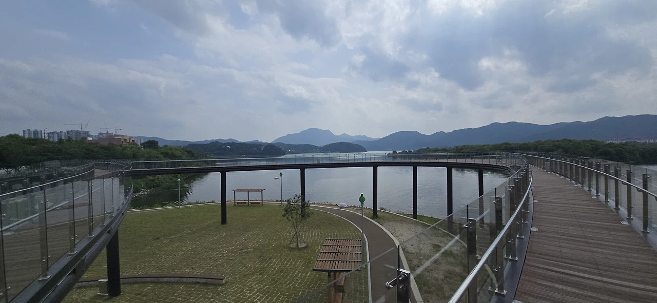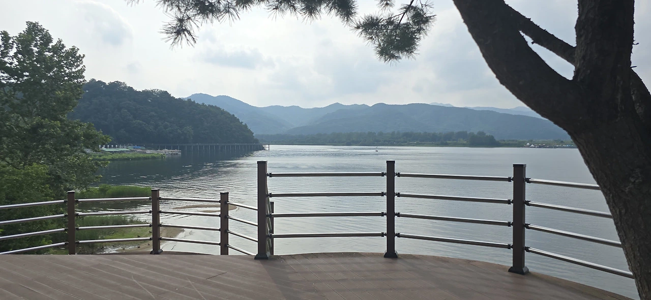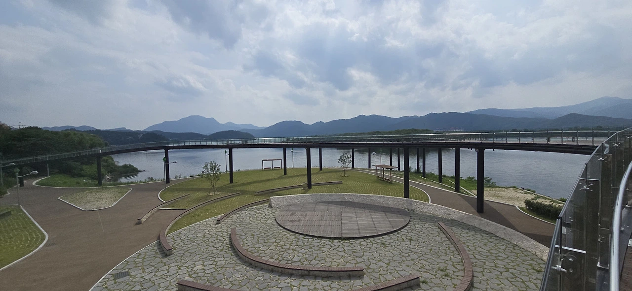 중도교를 건너 하중도로 넘어왔고 기나긴 춘천대교를 건너 의암호나들길로 돌아왔다. 봄내길 4코스로 말이다. 거대한 의암호의 가장자리로 편하게 걸을 수 있는 길이 잘 다듬어져 있었다. 춘천시문화광장숲에는 근사한 전망공간이 만들어져 있었다. 마치 공중에 있는 듯하니 이곳도 스카이워크라 할만한데 그런 이름은 붙어 있지 않았다. 의암호가 펼쳐져 있었고 바로 앞에 작은 섬이 있었다. 그 뒤는 하중도였고...