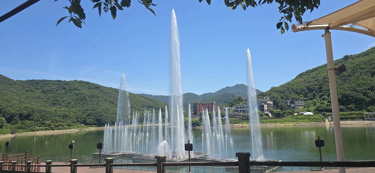 눈앞에서 분수가 하늘을 향해 뿜어져 솟구치고 있었다. 마치 춤을 추듯이 치솟는 물줄기는 변화무쌍하게 하늘로 치솟았다. 그런데 이 장관을 보는 사람이 나 말고는 거의 안 보인다. 이 멋진 장면을 말이다. 20여 년 전 일산에 살 때 일산호수공원에서 음악에 맞춰 뿜어져 나오던 분수를 본 이래 거의 처음이 아닌가 싶을 정도다. 천천히 발걸음을 옮겼다. 호숫가를 따라 산책로는 잘 나 있었다. 더구나 이중이었다. 위로는 이따금 자동차도 지나는 숲길이 따로 있었다. 쉬임 없이 길이 휘어져 지루할 틈도 없었다. 어느새 반환점 가까이에 이르렀다.