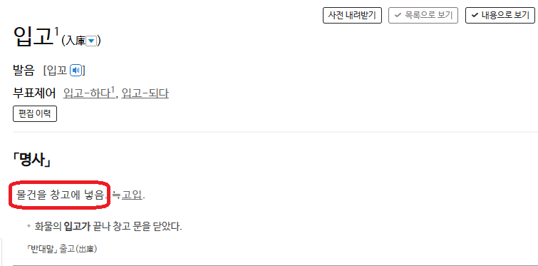 문제는 입고다. 입고는 국어사전에 이렇게 풀이되어 있다.