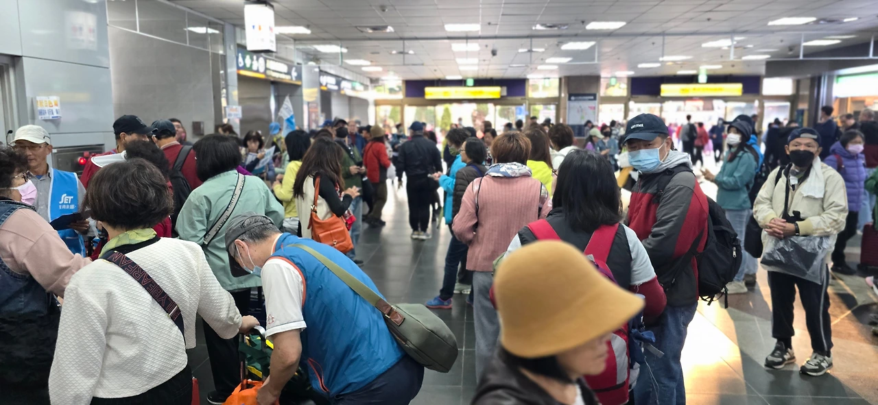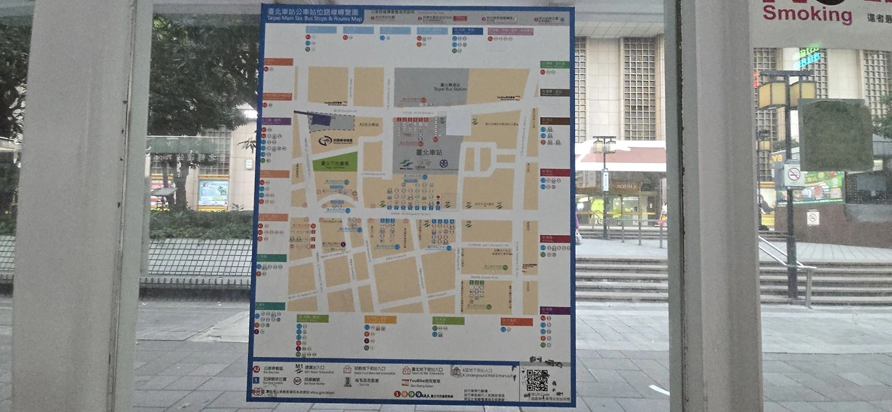 타이베이역은 타이베이의 중심에 위치한다. 건물은 직사각형으로 단순한 형태다. 다만 여간 넓지 않다. 1층은 사통팔달로 문이 뚫려 있다. 지하가 가관이다. 길이 수도 없이 많고 어디가 어딘지 도무지 종잡을 수 없다. 역 북쪽에는 市民大道와 鄭州路가 있다. 같은 길인데 市民大道는 자동차 전용의 고가도로이고 鄭州路는 지상의 도로이다. 고속버스터미널은 타이베이역에서 鄭州路 건너에 있다. 鄭州路는 차가 쉴새없이 지나다니니 아예 횡단보도가 없다. 지하로 오가거나 보도육교로 건너야 한다. 보통은 지하로 오간다. 타이베이역 부근의 지리를 익히기 위해 우선 지상으로 역을 한 바퀴 돌았다. 3면이 버스 정류장이었다. 남쪽 면의 M4 앞에 시티투어 2층버스 서는 곳이 있었는데 배차 간격이 너무 뜸해 놀랐다. 하루에 몇 번밖에 없었다. 나머지 한 면인 서쪽만 택시 정류장이었다. 지하로 내려가는 출구가 여간 많지 않았다. M1에서 시작한 번호가 적어도 M8은 있어 보였다. M뿐이 아니었다. K도 있었고 Z도 있었다. 그리고 Y는 무려 20번 정도까지 있었다. 말하자면 타이베이역 지하에서 지상으로 나오는 출구가 자그마치 수십 개였다. 타이베이역에서 북쪽의 버스터미널 있는 Q스퀘어몰로는 지하로 연결돼 있었다. Q스퀘어몰은 상가였다. 11시부터 문을 연다고 씌어 있었다. 어찌어찌해서 Q스퀘어몰 서쪽 끝에 있는 호텔로 되돌아올 수 있었다. 6층 식당으로 내려갔다.