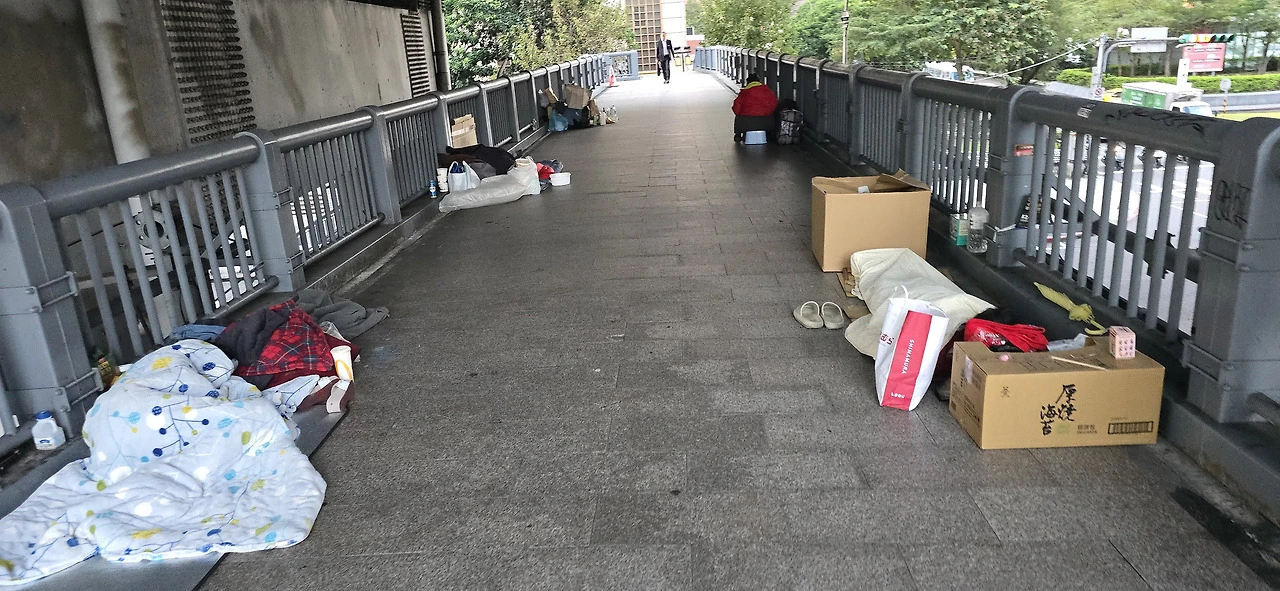 해외에 나올 때면 어김없이 일찍 잠에서 깬다. 조금이라도 더 보려고 새벽에 어딜 나갔다 오지 않으면 안 된다. 7시 반에 식당에서 식사를 하기로 했는데 깨보니 6시 반이다. 부리나케 옷을 챙겨 입고 밖으로 나왔다. 우선 타이베이역 일대의 지리를 좀 익혀야겠다 싶었다. 호텔을 나와서 역 쪽으로 가기 위해 육교를 건너는데 노숙자들이 여기저기에 이불을 덮고 누워 있다. 얼마나 추울까.