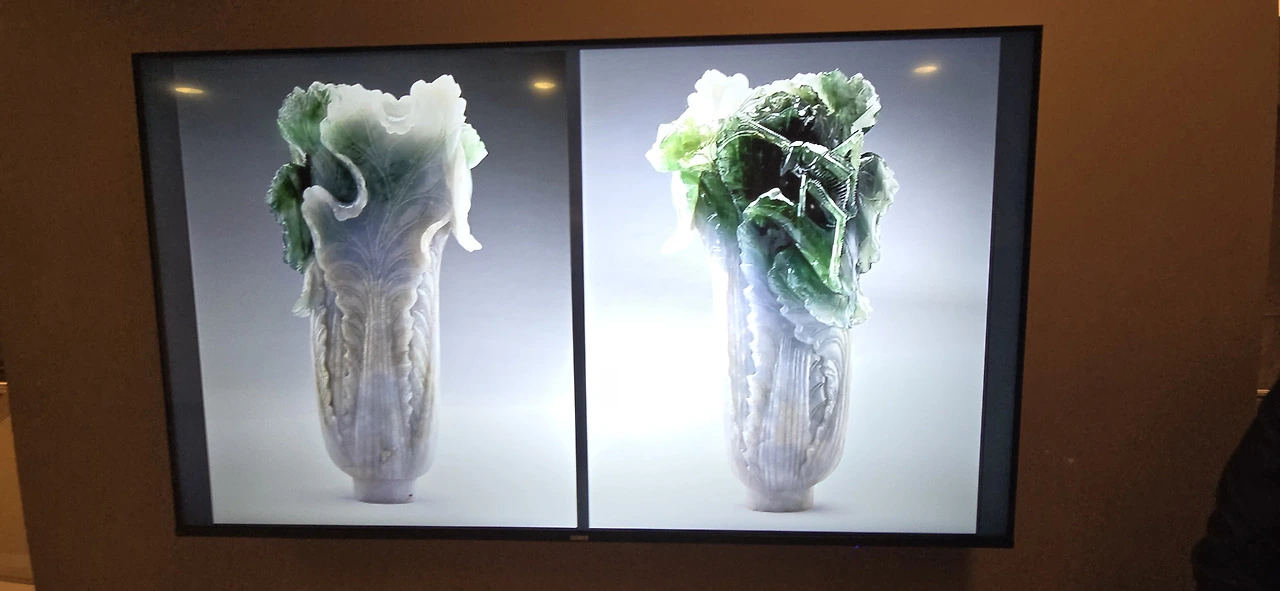 9시 50분에 지하 1층에서 도슨트와 만났다. 일행은 스무 명이었다. 이어폰을 지급받고 10시 정각에 1층으로 올라가 투어를 시작했다. 도슨트는 10년 경력이라고 자기를 소개했다. 몇 가지 개괄적인 설명을 했다. 유물들은 원래 베이징의 자금성에 있었다 한다. 1925년에 자금성이 중국의 국립박물관으로 출발했단다. 올해로 100년이다. 그러나 1931년 만주사변이 일어나면서 일본의 침략이 노골화되고 유물을 베이징에서 다른 곳으로 옮길 필요가 생겼다. 자금성에 있던 유물들이 난징, 상하이를 거쳐 충칭 등으로 옮겨다니다가 다시 난징, 상하이에서 대만으로 옮겨오게 된 게 1948년 말과 1949년 초였다고. 대부분은 군함으로 실어서 대만 지룽(基隆)으로 옮겨왔는데 지룽에서는 다시 타이중으로 옮겨졌고 1965년에 타이베이의 국립고궁박물관 건물이 지어지면서 드디어 종착지에 다다랐단다. 실로 이루 말할 수 없이 험난한 여정이었다. 역사에서 가정은 무의미하다지만 만일 유물들이 자금성에 그대로 있었다면 어떻게 되었을까. 일본이 유물들을 일본으로 약탈해 갔을까. 1948년과 1949년에 장개석이 대만으로 옮겨가지 않았다면 중국 공산당은 또 유물들을 어떻게 했을까. 궁금증이 꼬리를 문다.