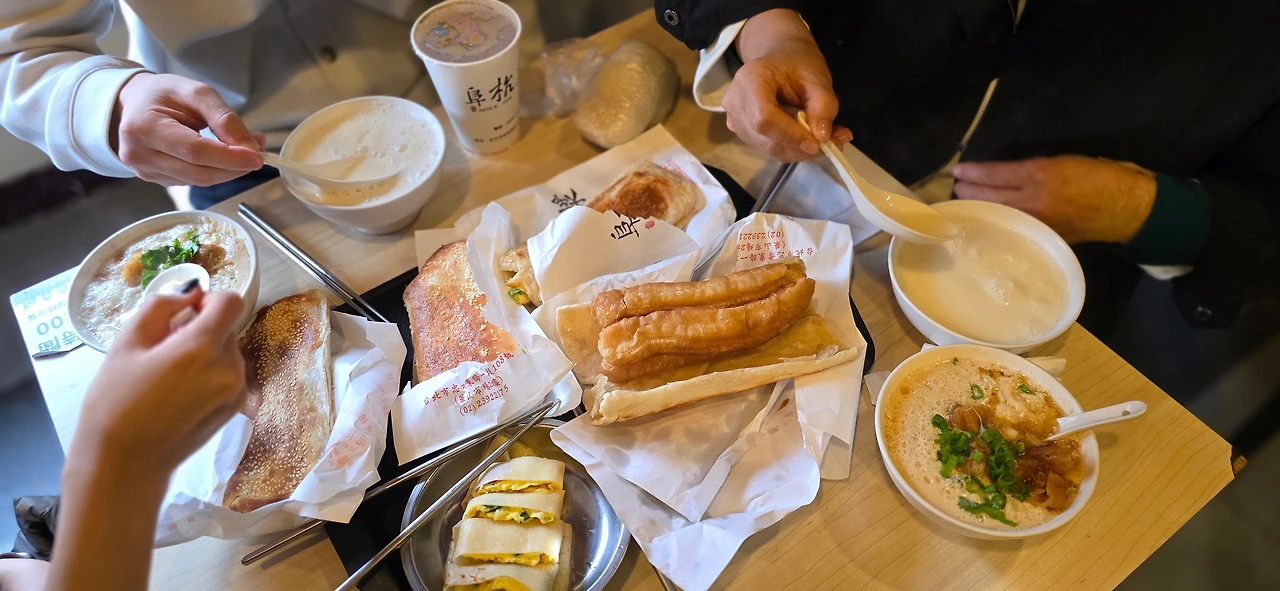 푸항또우장은 굉장했다. 무슨 식당이길래 줄이 이렇게 기나. 이미 거기 가는 택시에서 이 식당의 명성에 대해 들었다. 우리가 푸항또우장 간다 하니 웃으며 자기는 안 가봤다 했다. 언제나 밖에서 줄이 길게 서 있어서 타이베이에 살면서도 가보지 않았다는 것이다. 우리는 무려 30분가량 줄을 섰다. 드디어 2층에 있는 식당에 이르렀다. 이 식당이 특이한 것은 또 있었다. 차례가 되어 직원에게 주문할 음식을 말하면 그 자리에서 바로 내준다. 모든 게 준비되어 있기 때문에 가능한 일이다. 2018년부터 미슐랭 별을 받았음이 적혀 있었다. 외국인이 많이 찾는지 영어로는 Fuhang Soy Milk라 적혀 있었고 한국어로는 푸항두유라 씌어 있었다. 일본어도 있었다. 식당은 넓었고 의자는 모두 간이의자였다. 먹고 바로 나와야 했다. 현지인이 많았지만 곳곳에 외국인들이 눈에 띄었다. 미슐랭 별을 받는 음식점이라면 꽤 근사한 식당을 떠올렸는데 여긴 전혀 그렇지 않다. 대중식당이다. 30분이나 기다려야 했던 것 치고는 정작 음식은 대단히 감탄할 정도는 아니었다. 담백하단 느낌은 확실히 들었다. 콩국물이 부드럽게 목으로 넘어갔다. 도대체 무엇이 이 식당을 그토록 사람들이 오래 기다리면서까지 먹으러 오게 하는가. 참을성 있는 자만이 푸항또우장의 담백한 음식을 먹어볼 수 있다.
