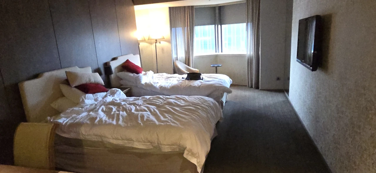 호텔로 돌아와 짐을 정리하고 체크아웃할 준비를 마쳤다. 방을 나가기 전에 사흘 묵었던 방을 사진에 담아두었다. 널찍한 트윈베드룸이었다. 밤에 잘 때 등이 꺼지지 않는 게 몇 있어 좀 성가셨을 뿐 5성급 호텔답게 쾌적했다. 양치 도구가 없는 건 특이했다. 세계가 다 그런가. 모르겠다. 8시 정각에 6층 프런트로 내려갔다. 첫날 체크인할 때와 달리 체크아웃엔 시간이 별로 걸리지 않았다. 君品酒店, 프랑스어로는 Palais de Chine다. 타이베이역 가까이에 근사한 호텔이 있었다.