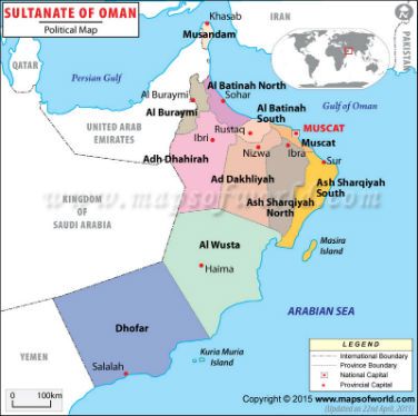 오만은 아라비아반도 동남부에 있는 나라로 아랍에미리트, 사우디아라비아, 예멘과 국경이 맞닿아 있다. 석유와 천연가스가 나기 때문에 중동에서 비교적 부유한 편에 속한다. 오만은 포르투갈의 지배를 받기도 했으며 영국의 보호를 받다가 1951년에 독립했다. 주변 다른 나라들에 비해 20년 먼저 영국으로부터 독립했다.