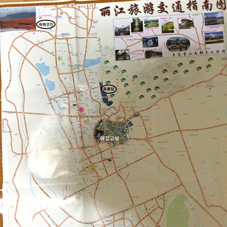 일행과 함께 호텔로 돌아왔으나 정작 여강고성(麗江古城)에는 못 갔으니 가보고 싶은 맘을 억누를 수 없었다. 혼자 다시 호텔을 나왔다. 미리 지리를 공부해두었기에 여강고성을 향해 걷기 시작했다. 호텔에서 나와 남쪽으로 300미터쯤 걸으면 네거리가 나온다. 거기서 왼쪽으로 꺾어 직선으로 줄기차게 걸으니 큰 네거리가 나왔다. 거기서 대각선 방향으로 건넜다. 여강고성이 그쪽이니까.