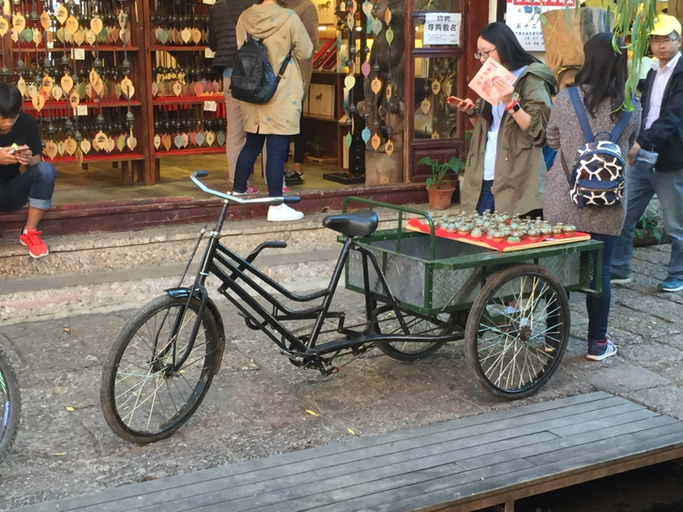 드디어 속하고진에 닿았다. 속하고진은 여강 시내 한복판에 있는 여강고성과 비슷한 성격이다. 그 옛날에 조성된 마을로서 가이드 설명에 따르면 여강고성은 귀족들이 중심이 되어 이룬 도시고 속하고진은 시 변두리에 서민들이 형성해 놓은 마을이다.