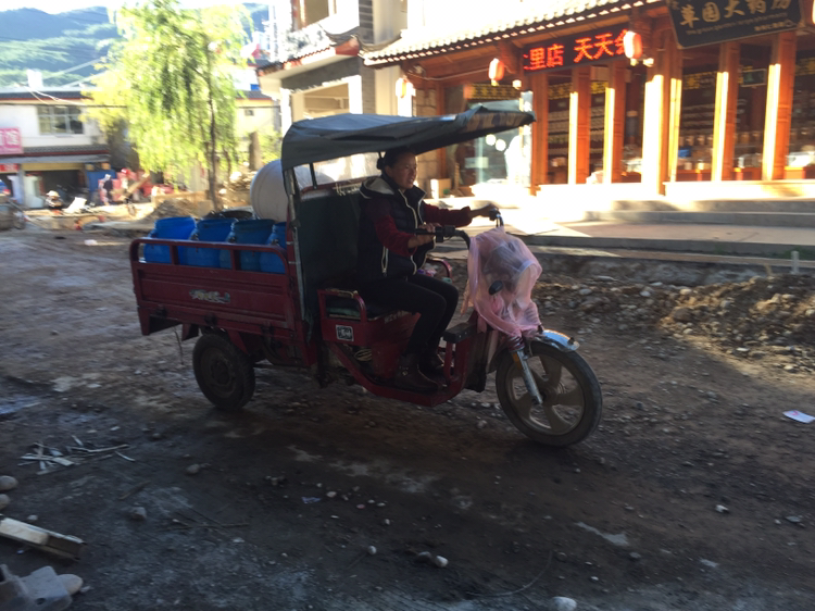 저녁 시간 전까지 볼 곳은 속하고진(束下古鎭)이다. 여강 시내 북쪽 변두리에 있다. 공항은 시내 남쪽이니 시내를 통과해서 속하고진으로 간다. 차창 밖으로 여강 시내 거리가 보였다. 우선 눈에 띄는 게 오토바이다. 자전거는 별로 없고 오토바이가 제법 보인다.