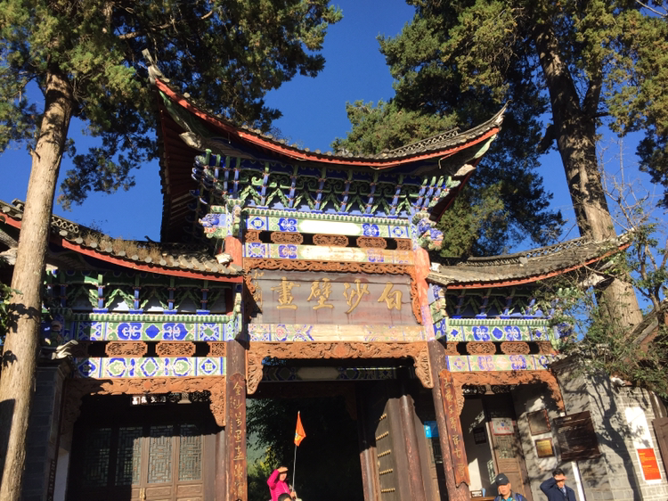 호텔에서 버스를 타고 북으로 향했다. 먼저 시내를 벗어나 얼마 안 가 있는 백사벽화(白沙壁畵)에 들렀다. 옥룡설산 가는 방향의 큰 길 가까이에 있었다. 건물 안에 명, 청 시대에 그려진 그림들이 있었다. 첫 건물에는 그림들을 사진으로 찍은 게 걸려 있었고 하나 안으로 더 들어가니 커다란 원본 그림이 걸려 있었다.