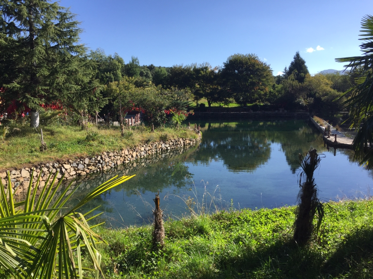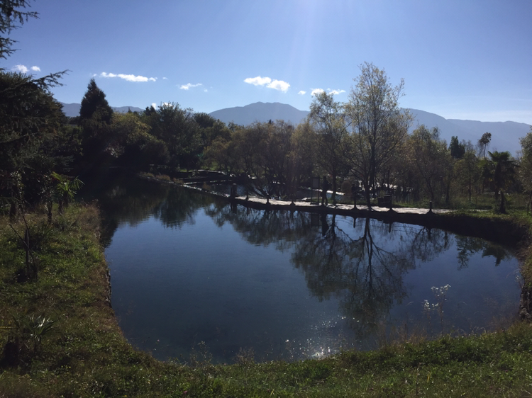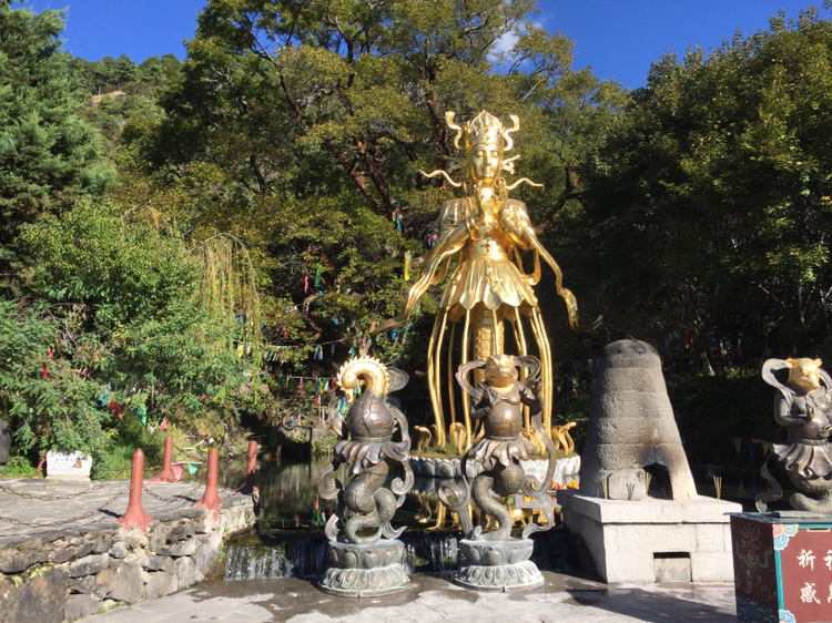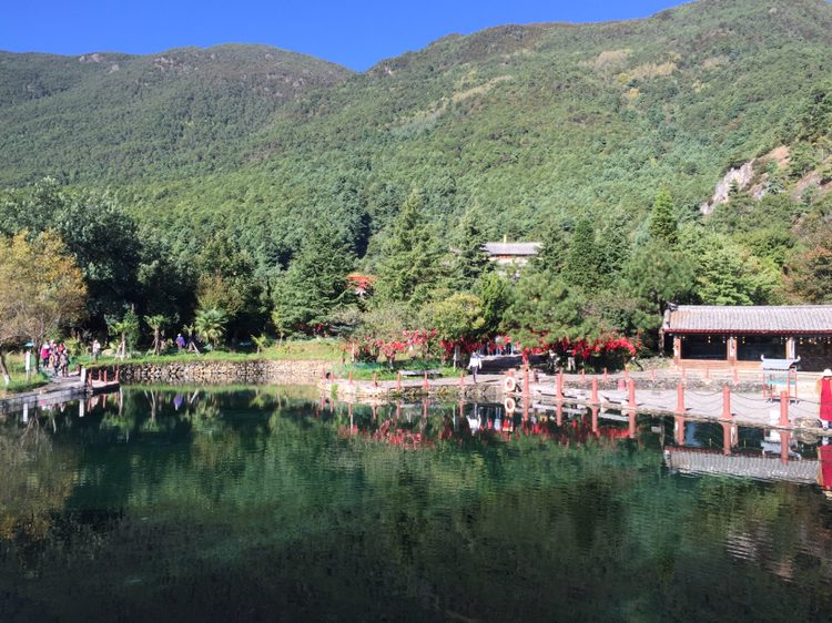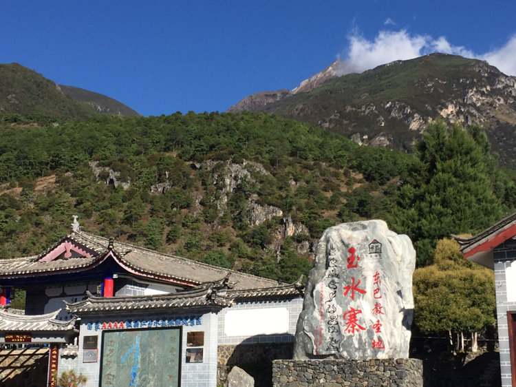옥수채의 옥수는 구슬과 같이 맑은 물이다. 옥룡설산에서 흘러내리는 물이 연못을 이루어 아래로 흐르고 있었다. 과연 물이 맑고 투명했다. 이곳은 나시족의 성지와도 같은 곳이라 했다. 옥수채 경내 안에 절이 자리하고 있었다. 나시족이 믿는 동파교의 본산이었다.