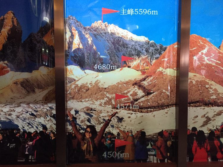 공연이 끝나고 점심을 먹어야 했다. 공연장 아래에 식당이 있었다. 밥을 든든히 먹어둬야 오후에 케이블카를 타고 옥룡설산에 오른다. 그래서 평소 먹는 양보다 더 먹었다. 고도가 높아 공기도 희박한데 허기까지 지면 곤란하니까. 길을 건너서 케이블카 타는 곳으로 가는 셔틀버스 승차장으로 갔다. 줄이 길었다. 거기만 해도 와이파이가 돼서 오전에 찍은 사진을 인터넷에 올렸다. 셔틀버스가 출발했다. 산으로 난 경사진 길을 오르기 시작했다. 매우 큰 버스였다. 100명은 탐직한... 그 큰 버스가 산길을 맹렬히 올라 9분만에 케이블카 타는 곳에 닿았다. 그곳은 해발 3,300미터라 했다. 케이블카 타기 위한 줄도 여간 길지 않았다. 쉬임 없이 케이블카는 내려오는 사람을 내려놓고 바로 올라갈 사람을 태웠다. 케이블카는 정원이 8명, 움직이는 사이에 올라타야 하니 동작이 기민해야 한다. 몸이 불편한 사람을 위해 멈춰준다거나 하지 않는다. 스키장 리프트와 마찬가지다. 우리 일행이 8명이라 한 케이블카에 함께 탈 수 있었다.