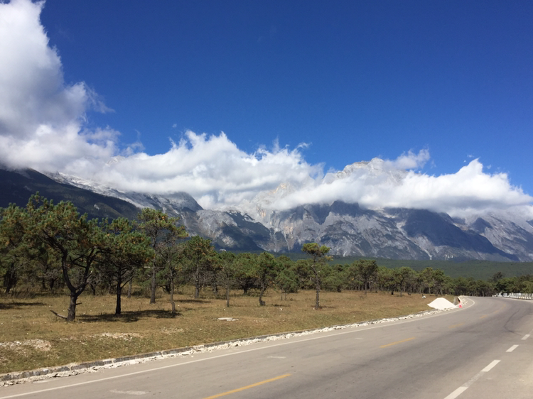 옥수채를 나와서 이제 옥룡설산으로 향한다. 설산이 점점 가까이 다가왔다. 하늘에 구름이 끝없이 모습을 바꾸고 있다. 우리가 산을 오를 때 저 구름이 있으면 안 되는데... 드디어 옥룡설산 주차장에 닿았다.