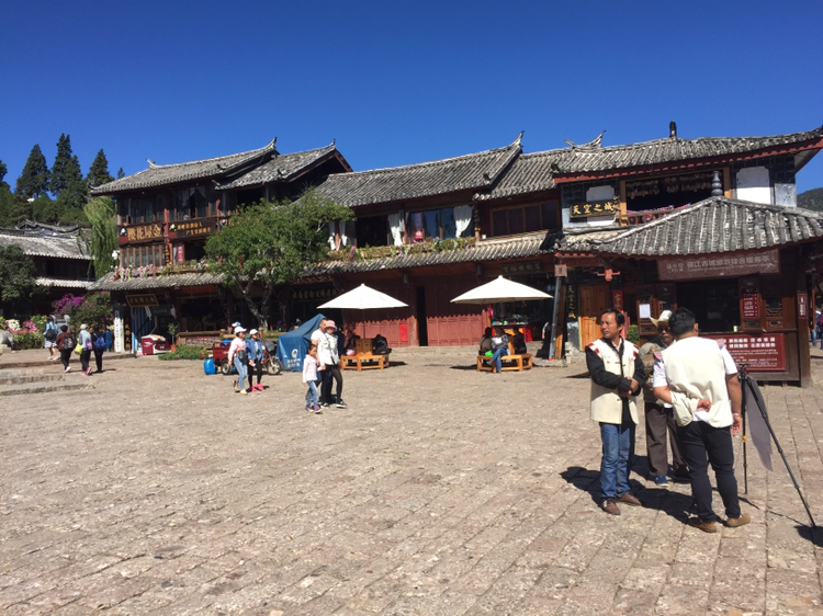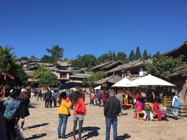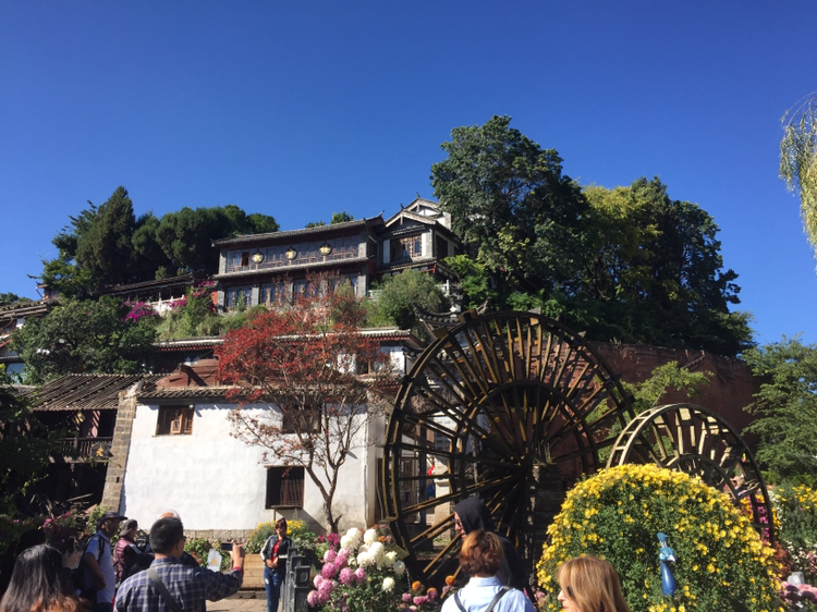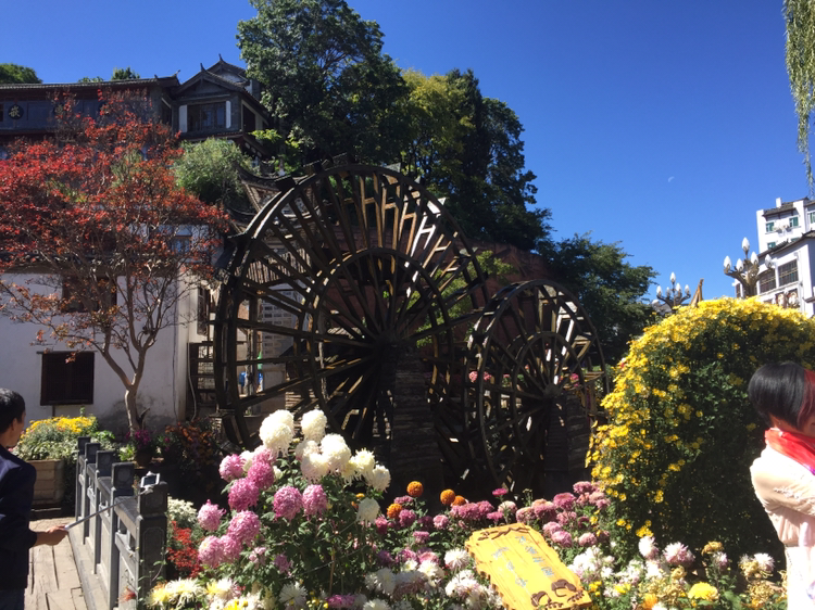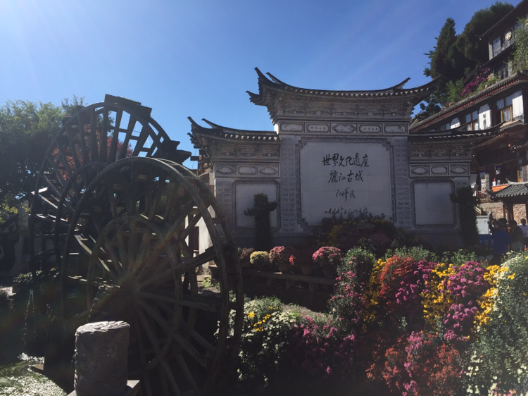 흑룡담공원에서 여강고성으로 넘어와 보니 갑자기 아주 낯익은 광경이 있었다. 여강고성 입구의 드넓은 광장이었다. 커다란 물방아가 돌고 있는 광장 말이다.