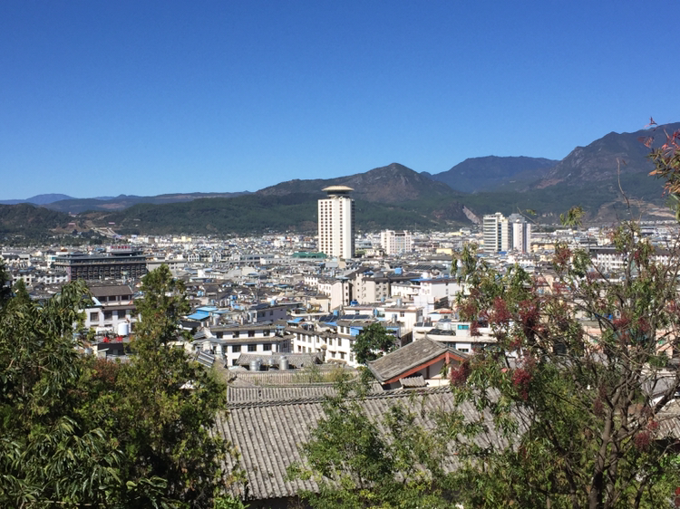 사방가 앞으로 돌아와 보니 아직 시간이 20여 분 또 남아 있었다. 이젠 친구와 헤어져 혼자 사자산으로 오르기 시작했다. 만고루를 가봐야 하니까 말이다. 전날 밤에 친구와 같이 왔던 언덕길을 따라 오르다가 전날 간 커피숍을 지나서 계속 더 올라갔다. 오르막이 끝나니 초소가 하나 보이고 그 반대편으로는 내리막이었다. 내가 길을 잘못 들었다. 만고루 가는 길이 아니었다. 하지만 만고루를 갔더라도 또 입장료 때문에 못 들어갔을 것이다. 초소 부근에서 반대편의 여강 시내가 그런 대로 잘 보였다. 동영상도 찍고 사진도 찍었다.